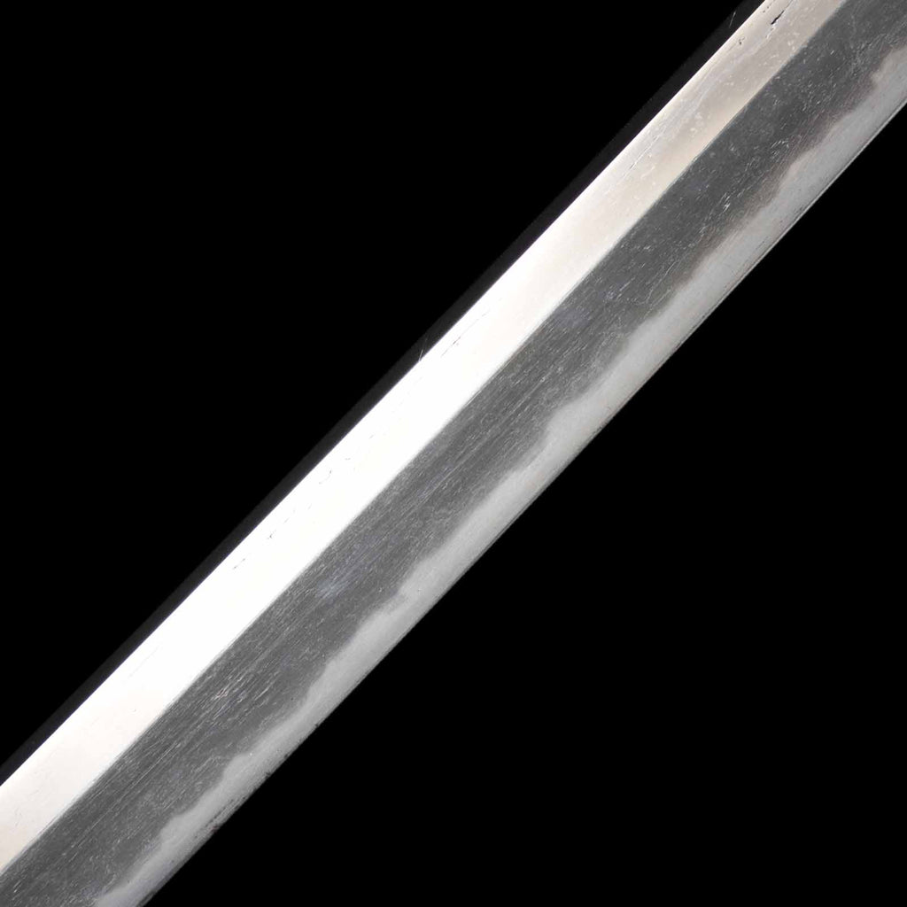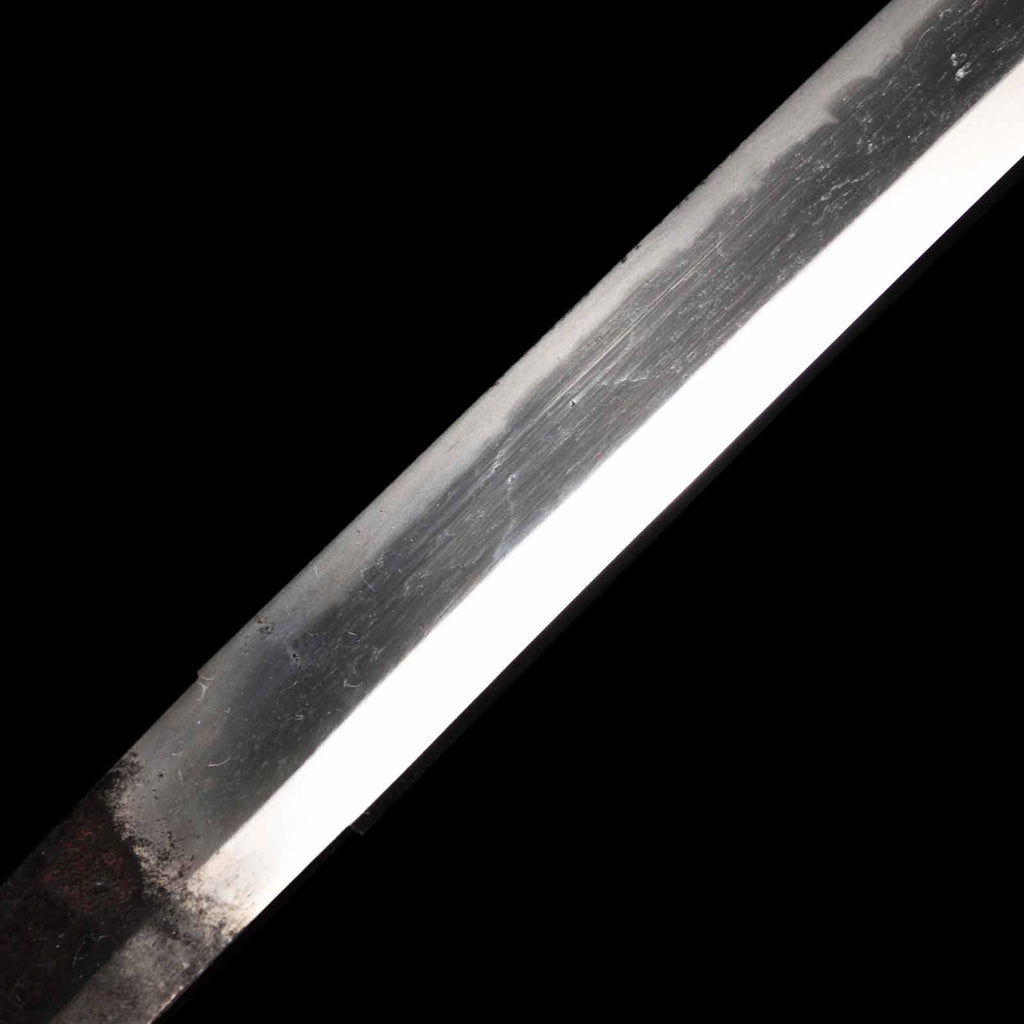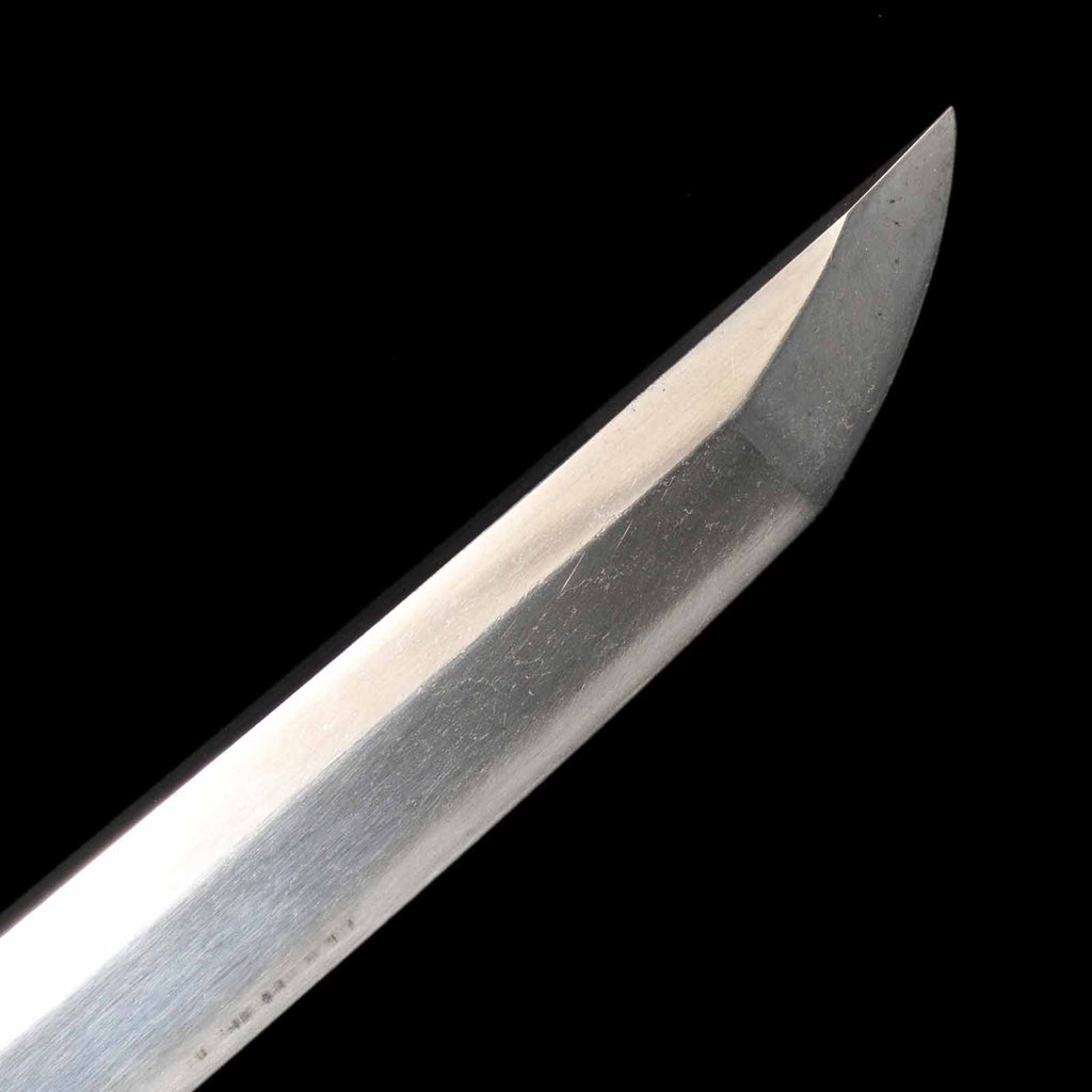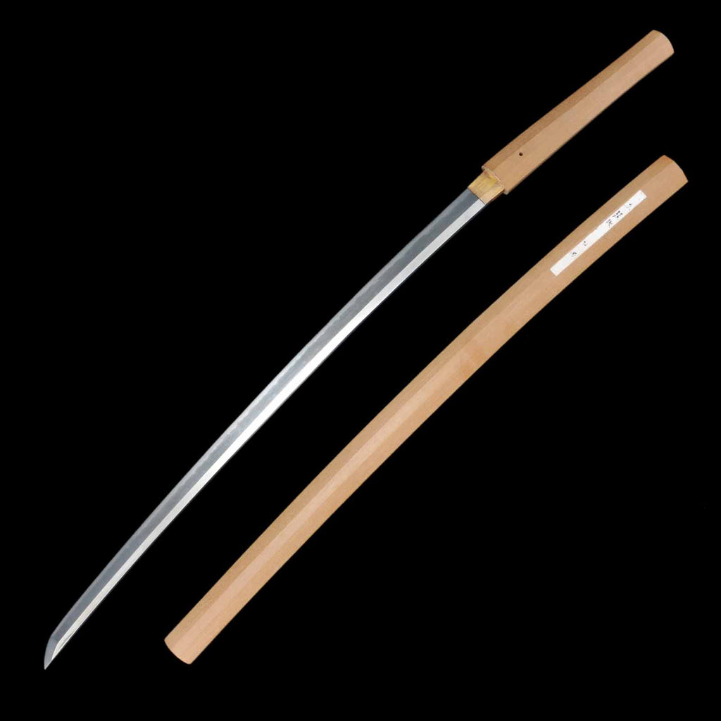 There are no chips on the blade. The hada is a mixture of itame and mokume with some chikei visible. Hamon is well tight with irregular midare with some gunome and togariba mixed in places. There is also hataraki such as ashi and yo. This sword blade was originally longer, but was shortened to its present length by Suriage. It has a weight and balance suitable for batto and iai use, and if you prefer, it can be equipped with an uchigatana koshirae for an additional fee. Please contact us after you have purchased this sword if you wish to have an uchigatana koshirae.