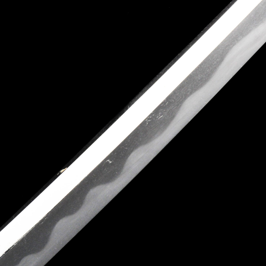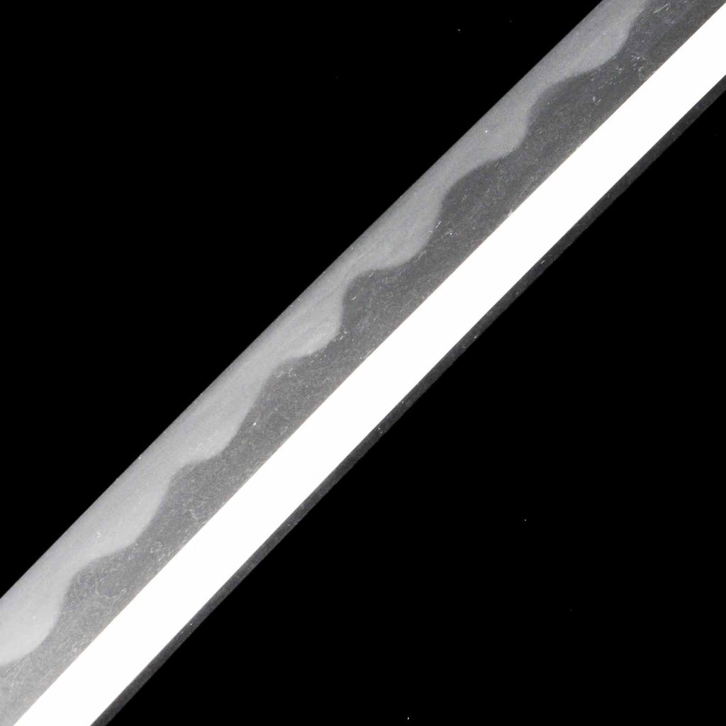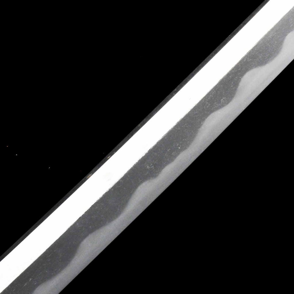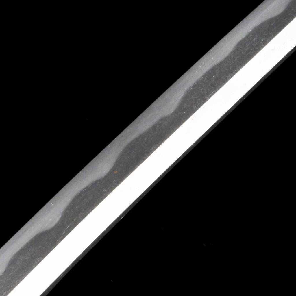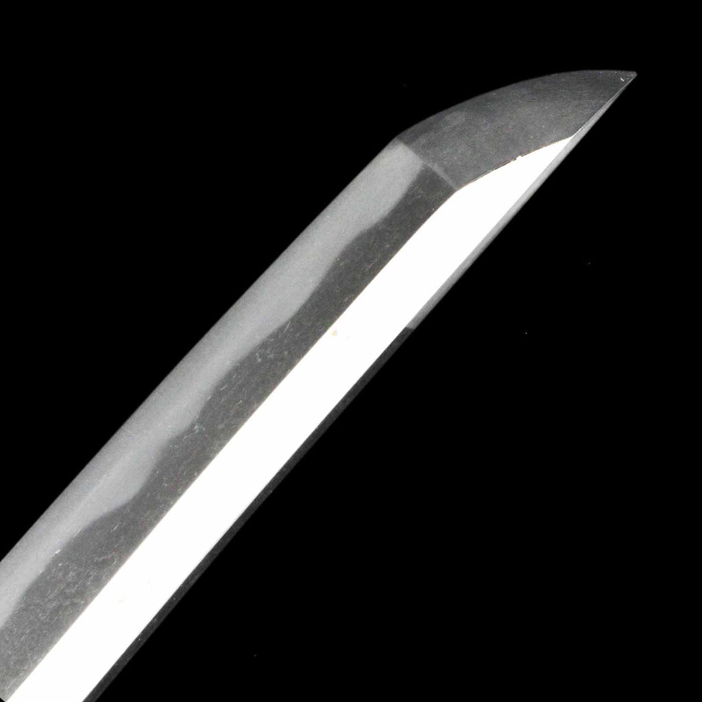 The blade is relatively well preserved, with no rust, chips, or other defects, but there is a spot on the sashiomote side about 10 cm from the habaki that is fukure-like. There are also some fukure marks about 18 cm from the habaki on the sashiura side as well as two cloudy white dots at a point about 30 cm from the habaki on the sashiura side.