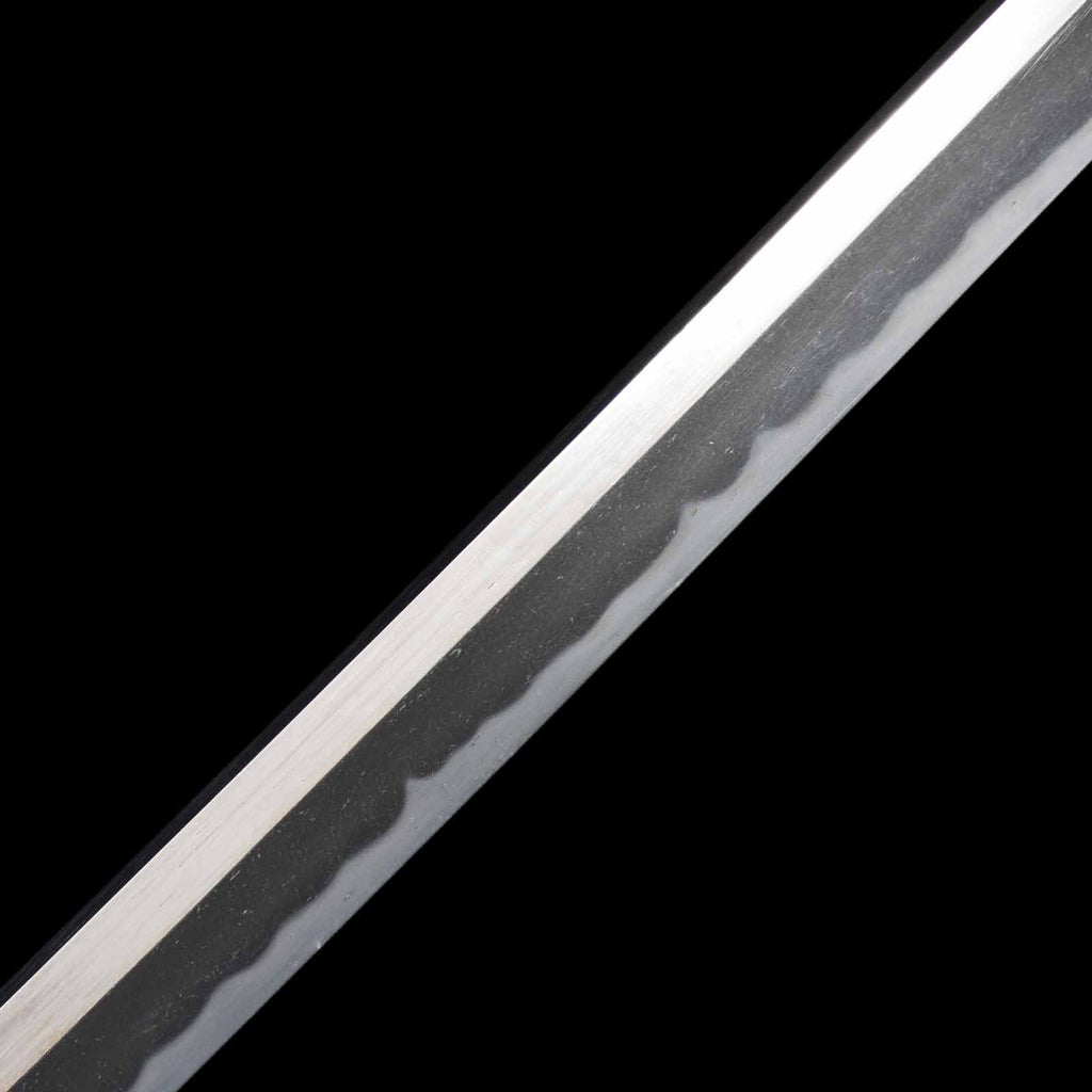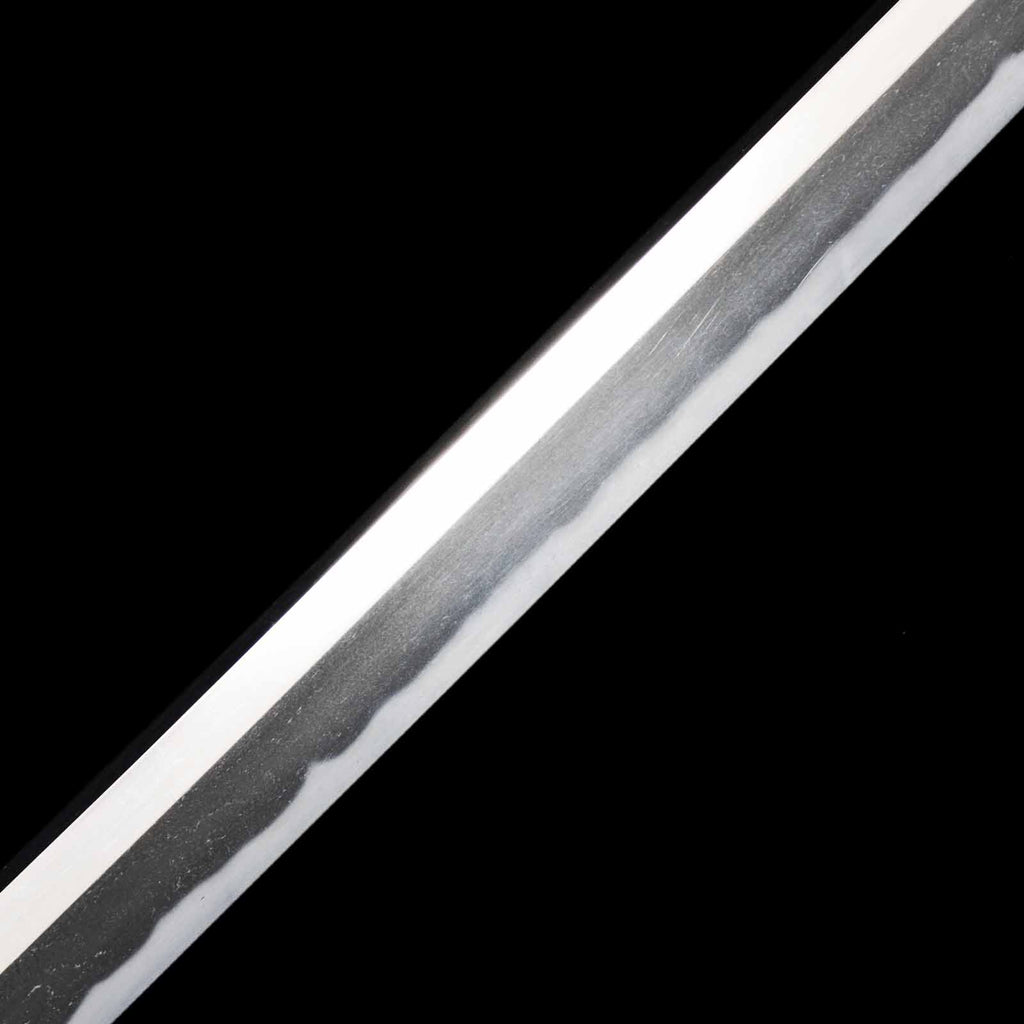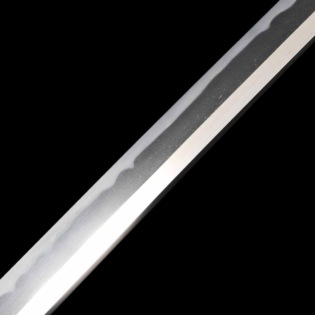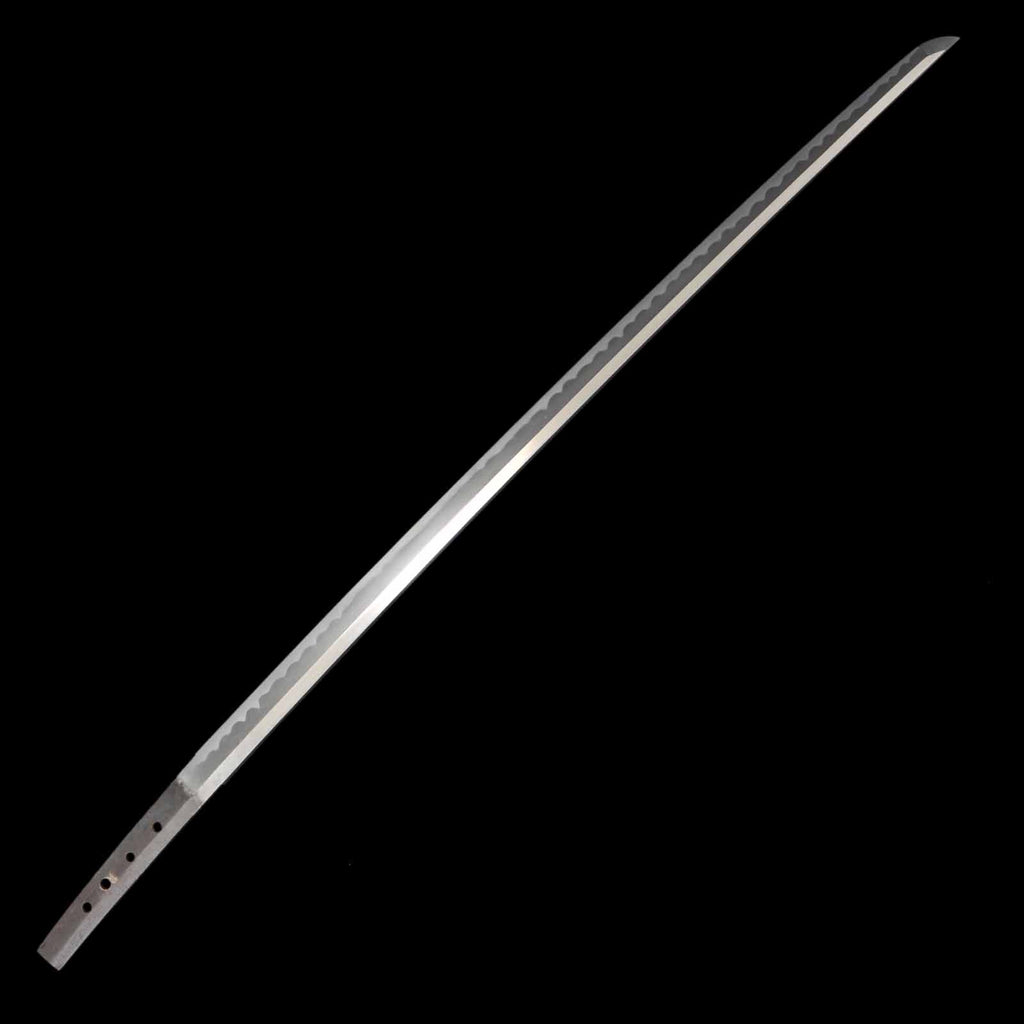 The surface of the sword is clean for its age and the hada and hamon are clearly visible. The hada is itame mixed with mokume and has very active chikei. Hamon is a gunome like togariba with notare mixed with gunome. Hataraki such as yo and ashi can also be seen in places. It has a relatively slender blade with little curvature, but originally had a blade length of about 73 cm, but repeated suriage has reduced it to its current length.