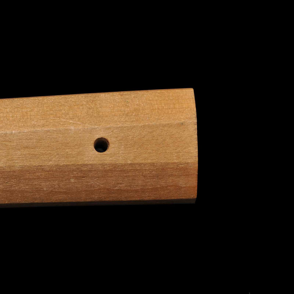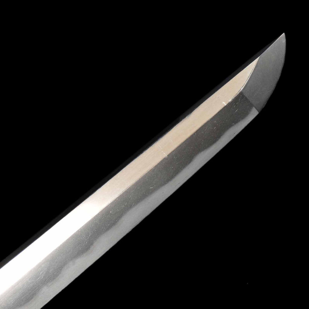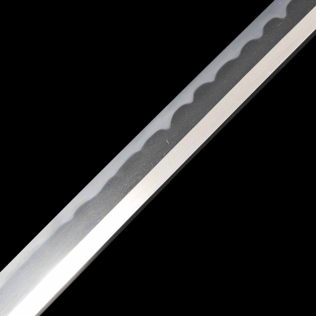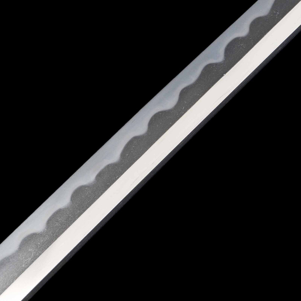 The surface of the sword is clean for its age and the hada and hamon are clearly visible. The hada is itame mixed with mokume and has very active chikei. Hamon is a gunome like togariba with notare mixed with gunome. Hataraki such as yo and ashi can also be seen in places. It has a relatively slender blade with little curvature, but originally had a blade length of about 73 cm, but repeated suriage has reduced it to its current length.