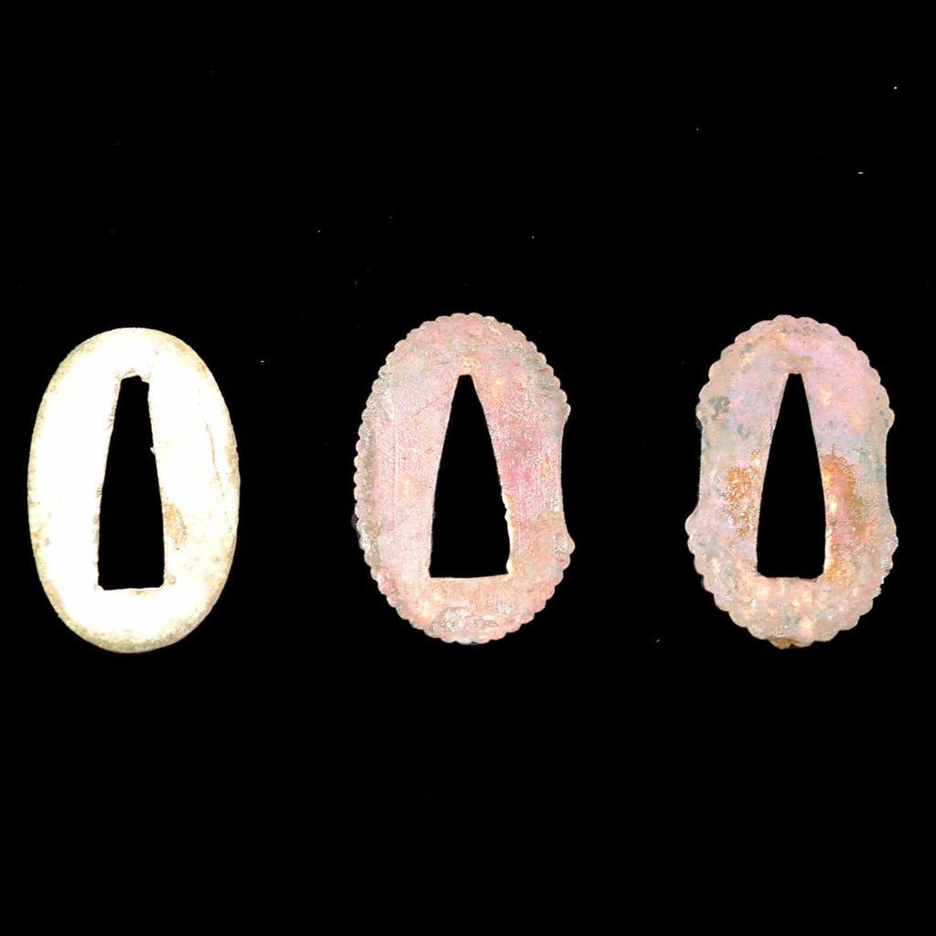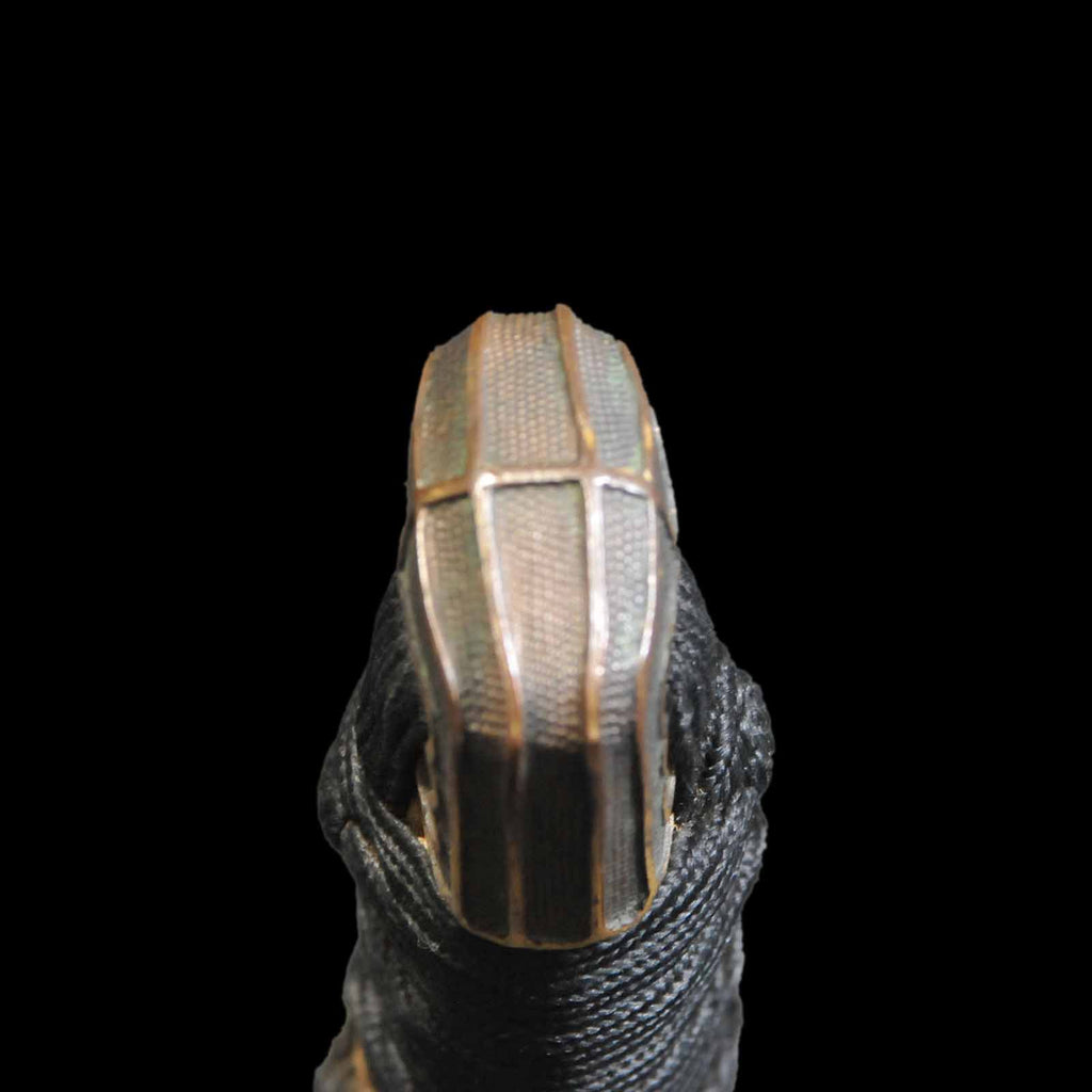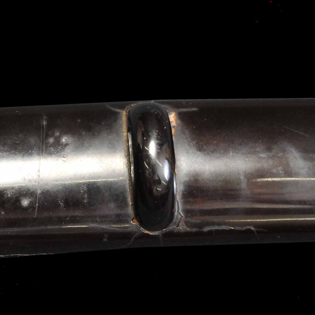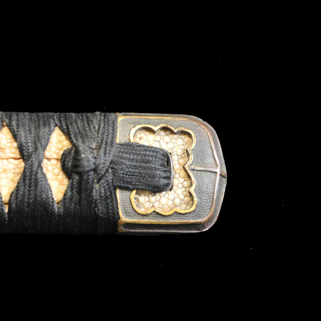 The fuchi kashira is in the style of handachi, and the tsuka has repair marks from tsukasame when it was rewrapped. It comes with a black scabbard, which has been fitted with a ready-made scabbard in recent years, but there is a crack in the Koiguchi on the mune side, so a spare scabbard will be provided free of charge.