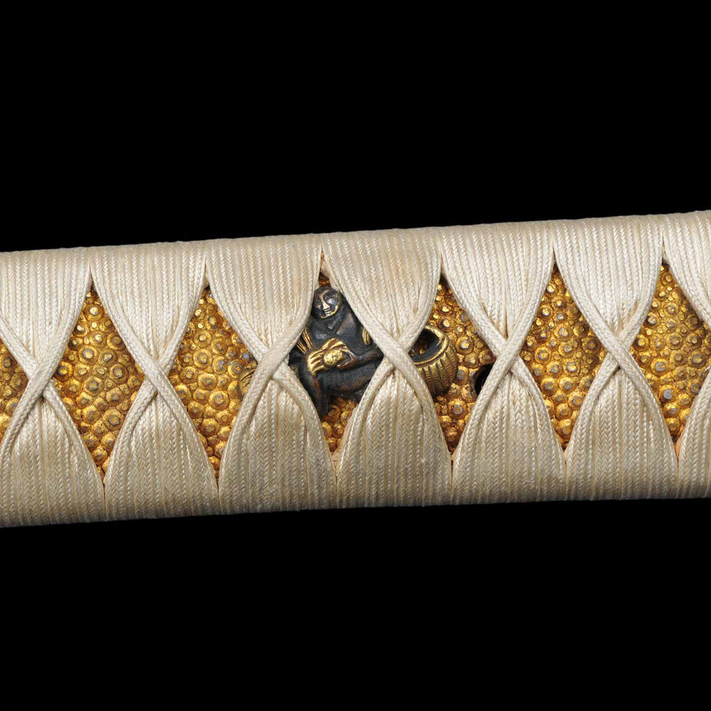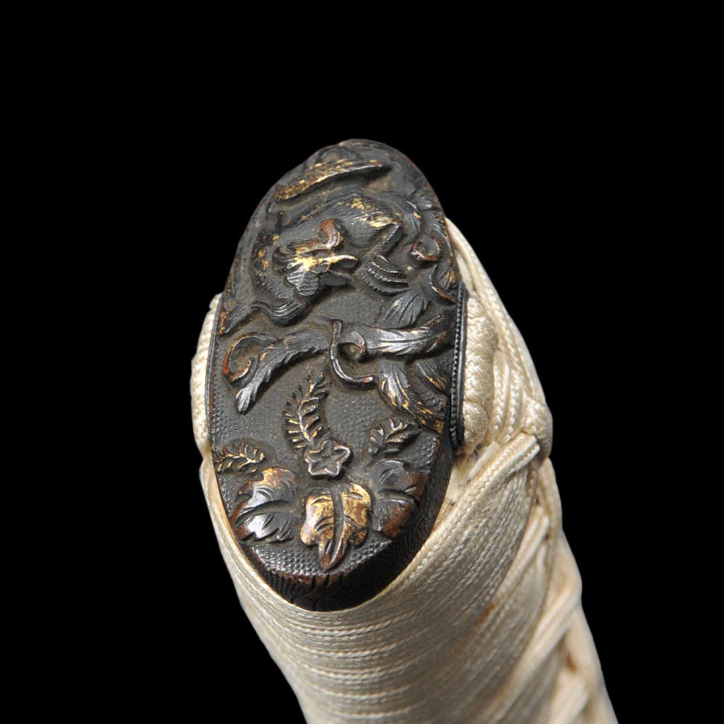 - Koshirae: Tetsukon silk tsuka wrapping with kuroishime lacquered saya