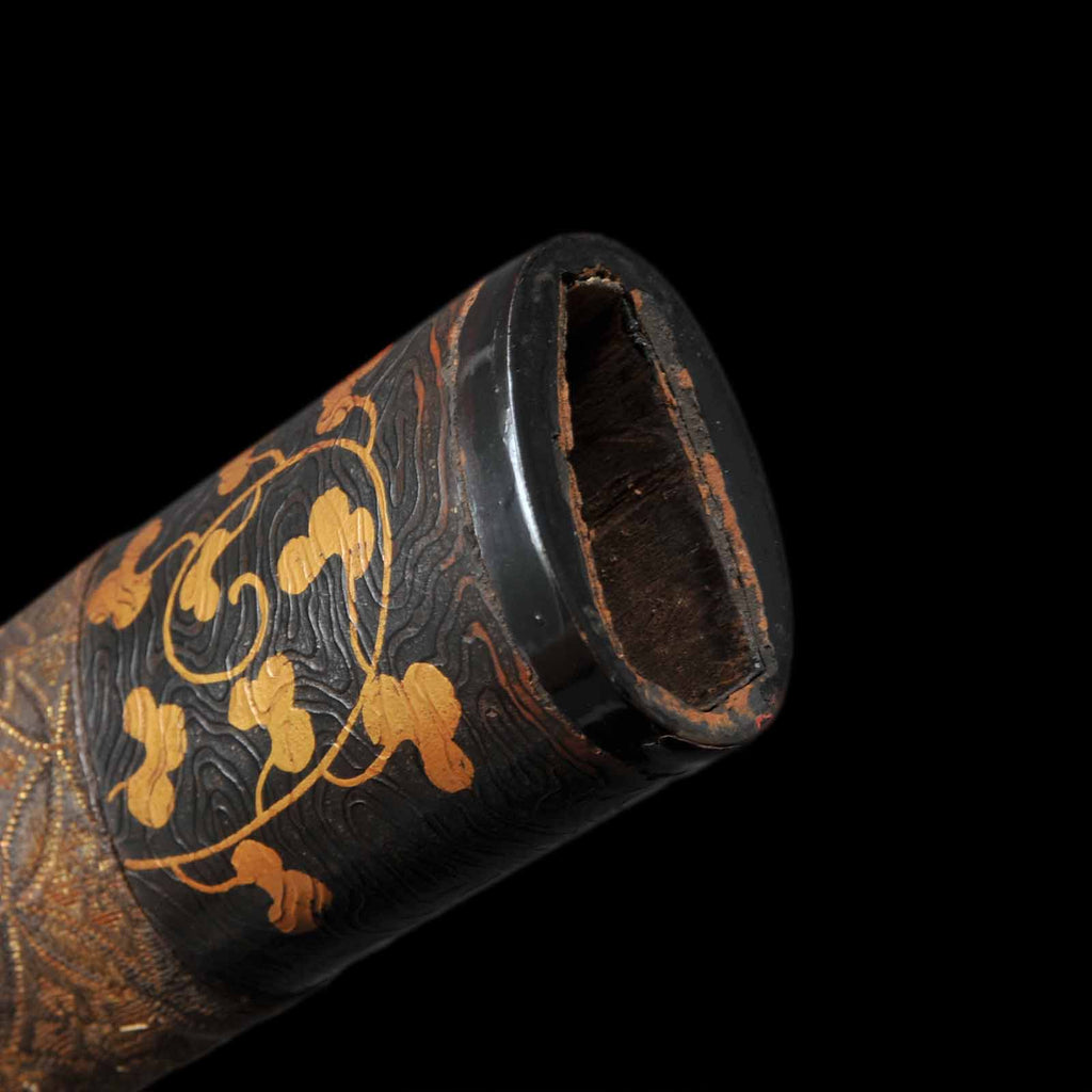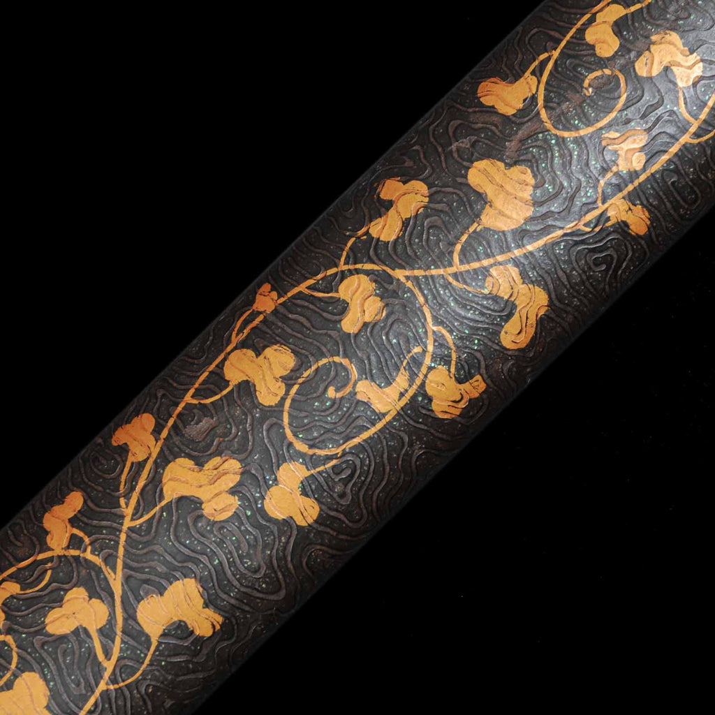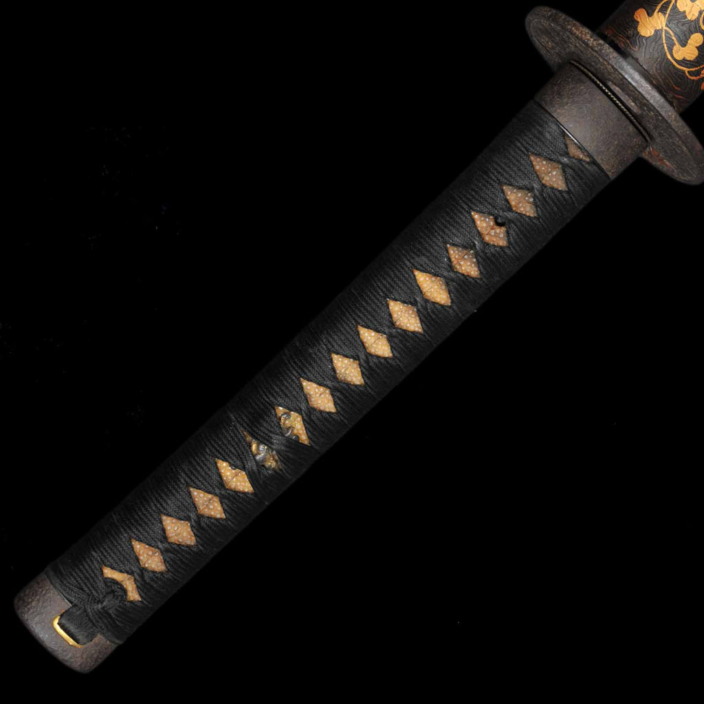 - Koshirae: Tetsukon silk tsuka wrapping with kuroro lacquered saya