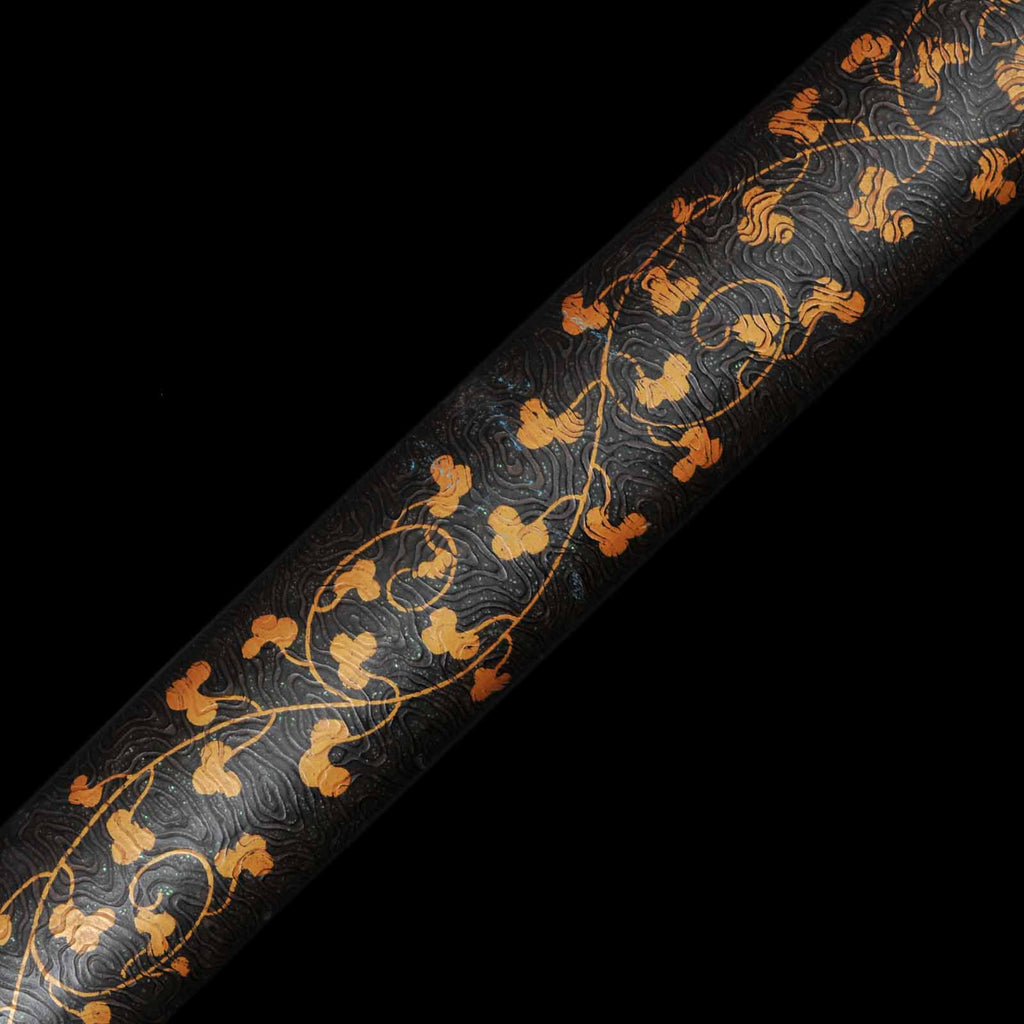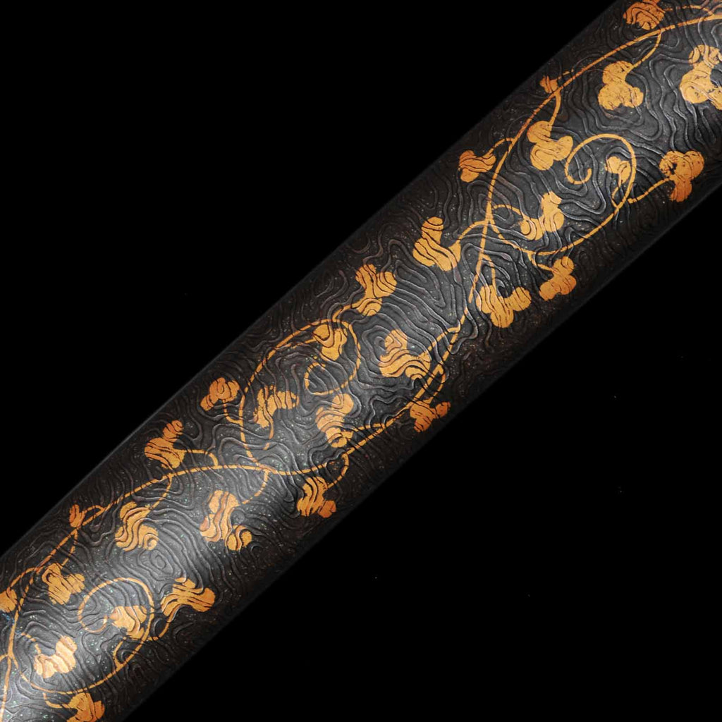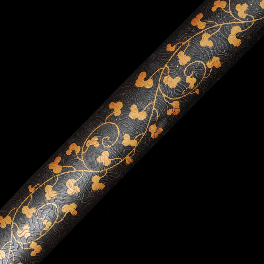 - Koshirae: Tetsukon silk tsuka wrapping with kuroro lacquered saya