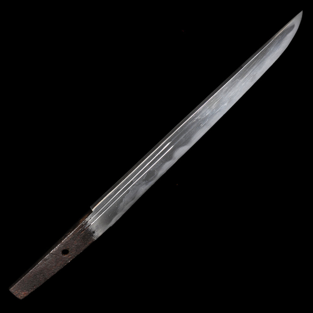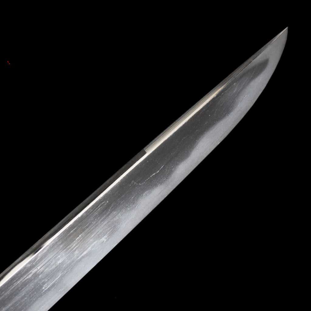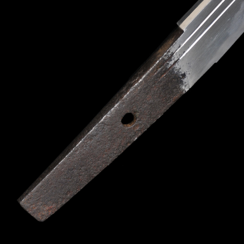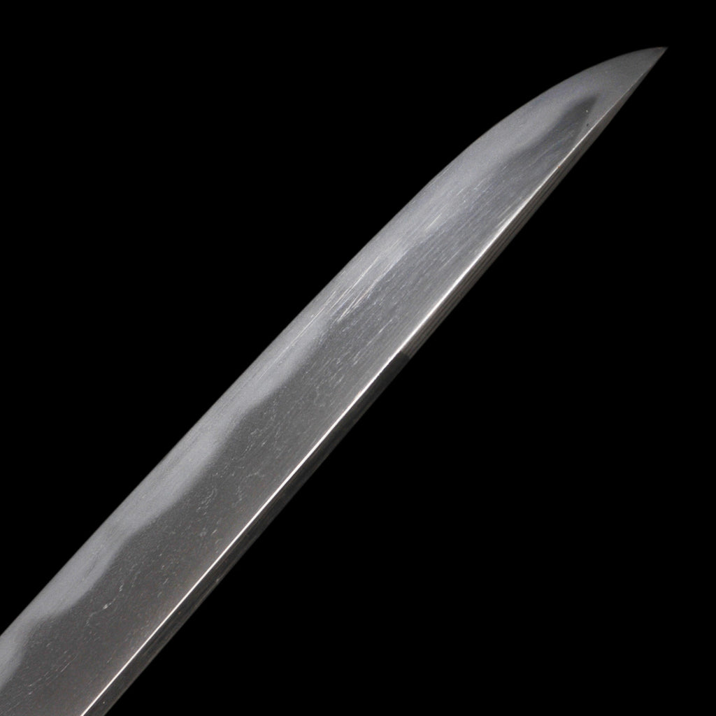The sword blade has been sharpened beautifully throughout and is free of any defects such as flaws, rust, or chips. The hiraji, about 3 cm from the habaki on both sides of the sword, has whitish traces of what appears to be a chemical reaction.
