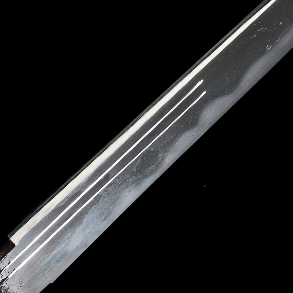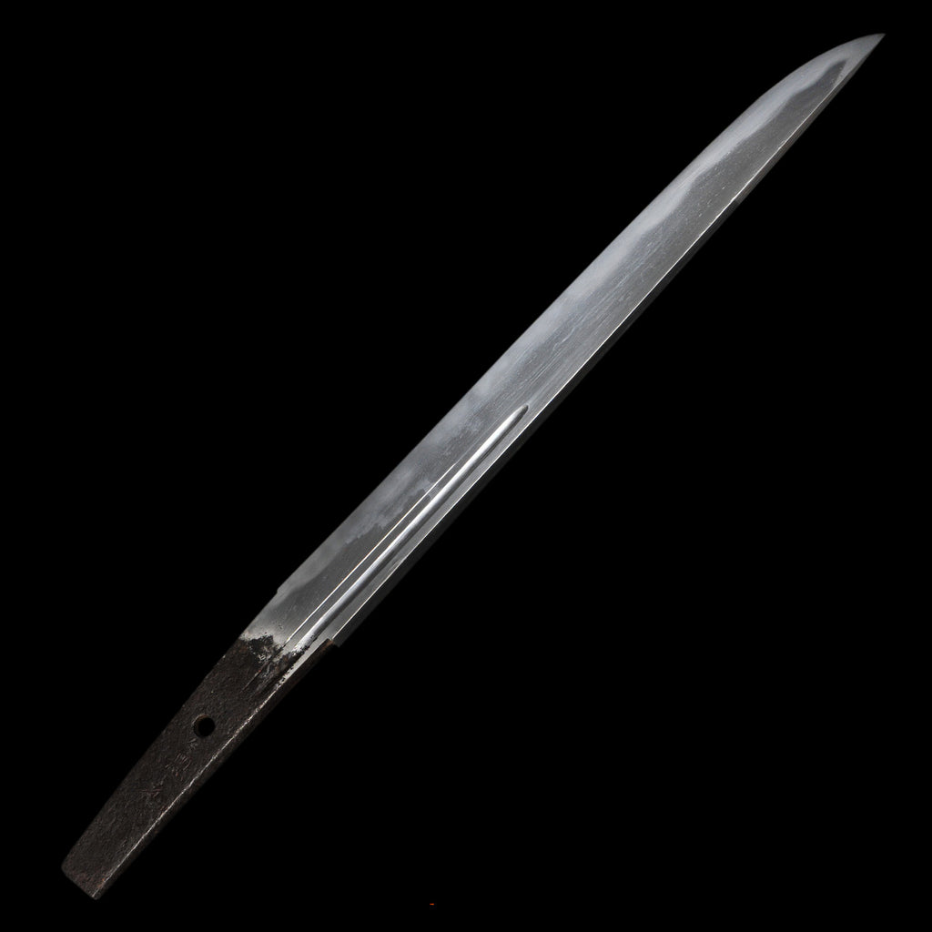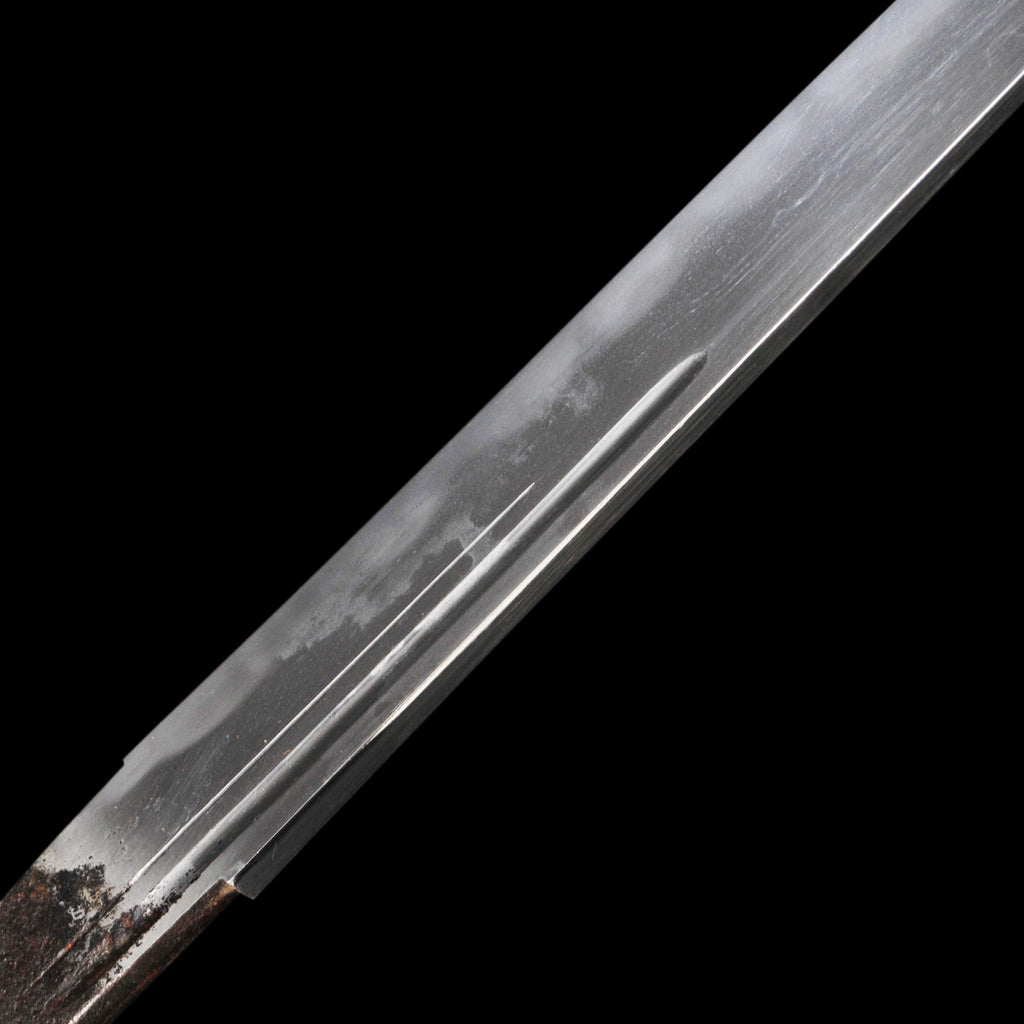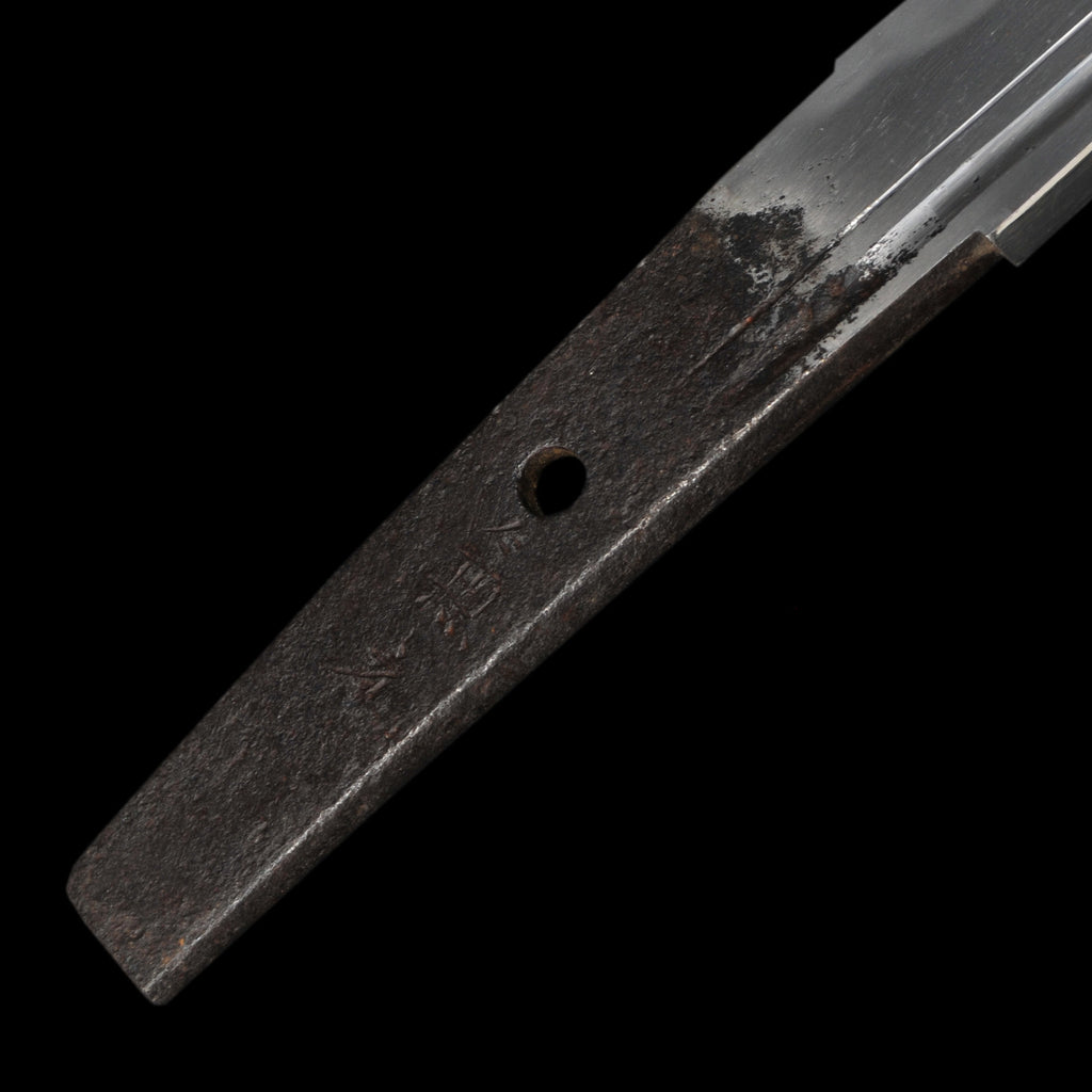 The sword blade has been sharpened beautifully throughout and is free of any defects such as flaws, rust, or chips. The hiraji, about 3 cm from the habaki on both sides of the sword, has whitish traces of what appears to be a chemical reaction.