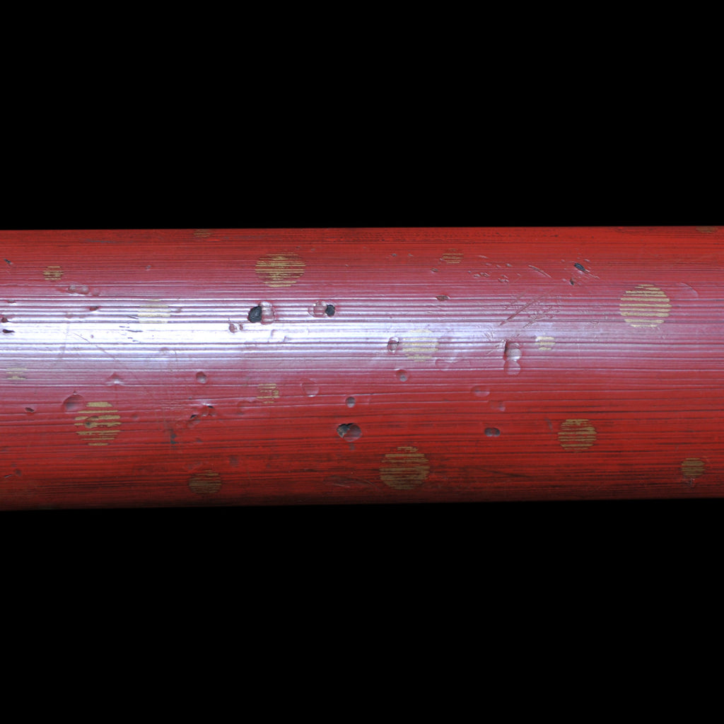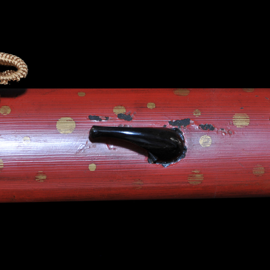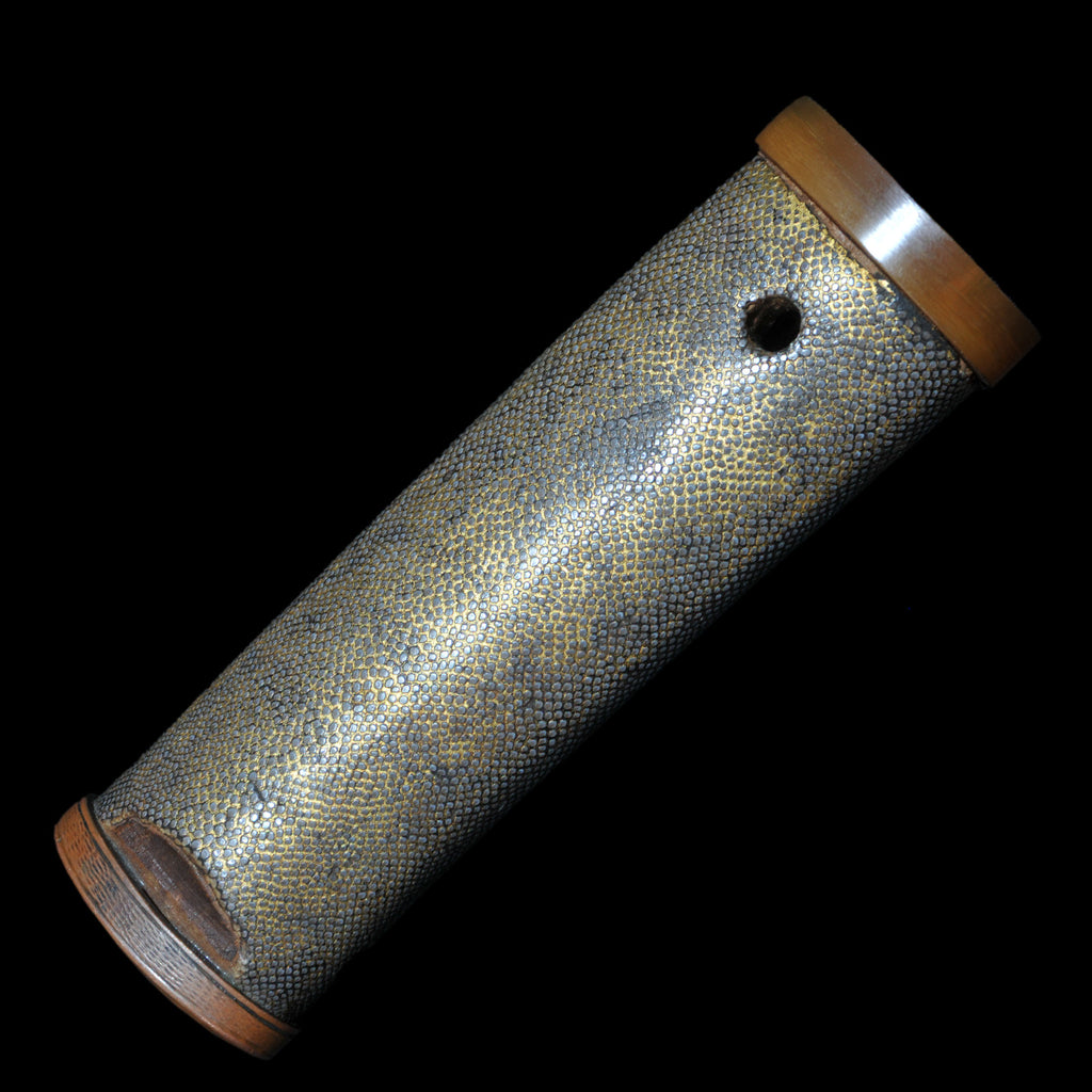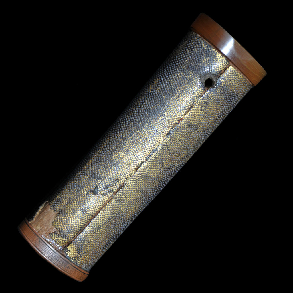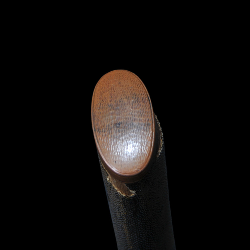 - Koshirae: Leather wrapped Tsuka & vermillion-lacquered Saya