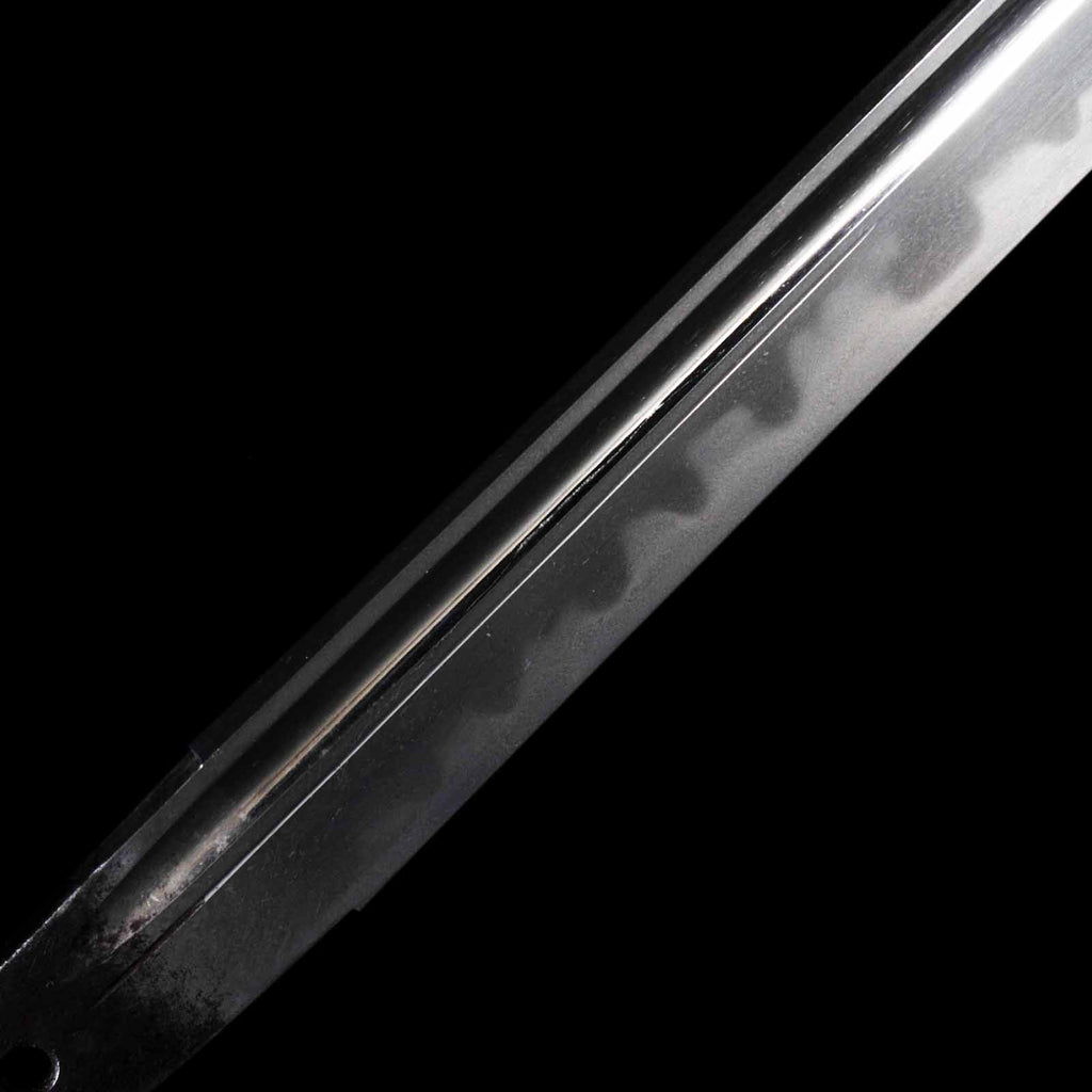 This piece is very well preserved with a beautiful hamon dagger. The well-packed itame hada has hataraki such as chikei. The hakomidare type of gunome hamon is very beautiful and has active hataraki such as kinsen and aranie.