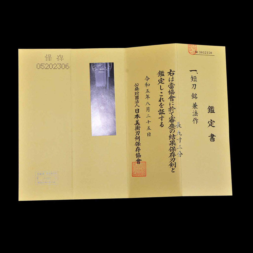 The Society for Preservation of Japanese Art Swords has given this work a hozon certification as highly worthy of preservation for posterity and issued a certificate of authenticity.