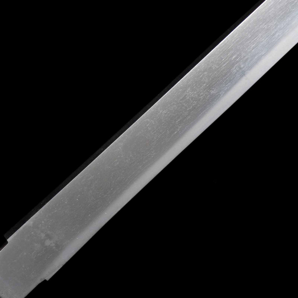The sword is extremely well preserved with no flaws such as flaws, rust, chips, or dents. The jigane has typical koto characteristics with itame well mixed with mokume. Hamon is a thin suguha with well-compacted nie. The name Mihara Kai Masayoshi is engraved on the nakago.