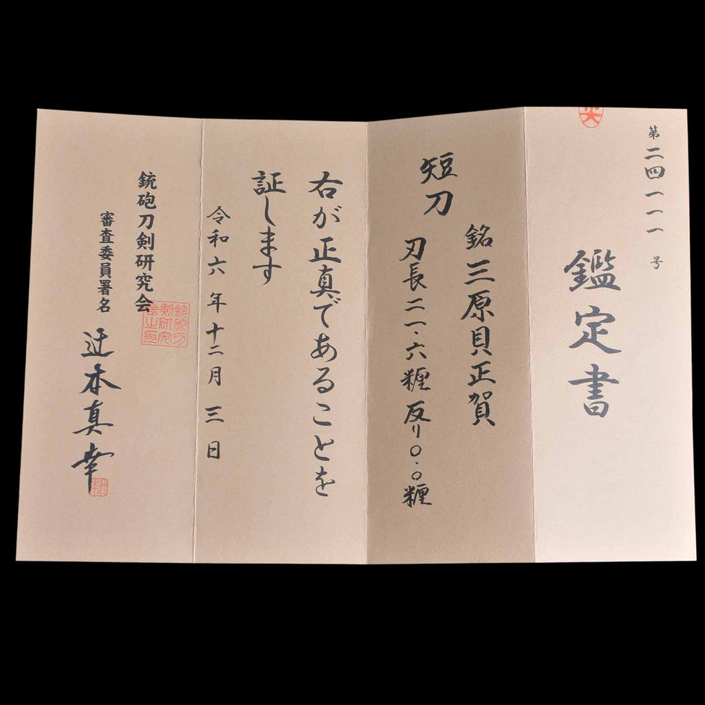 The Gun and Sword Research Society authenticated this piece as a genuine Masayoshi in December 2024 and issued a certificate of authenticity.