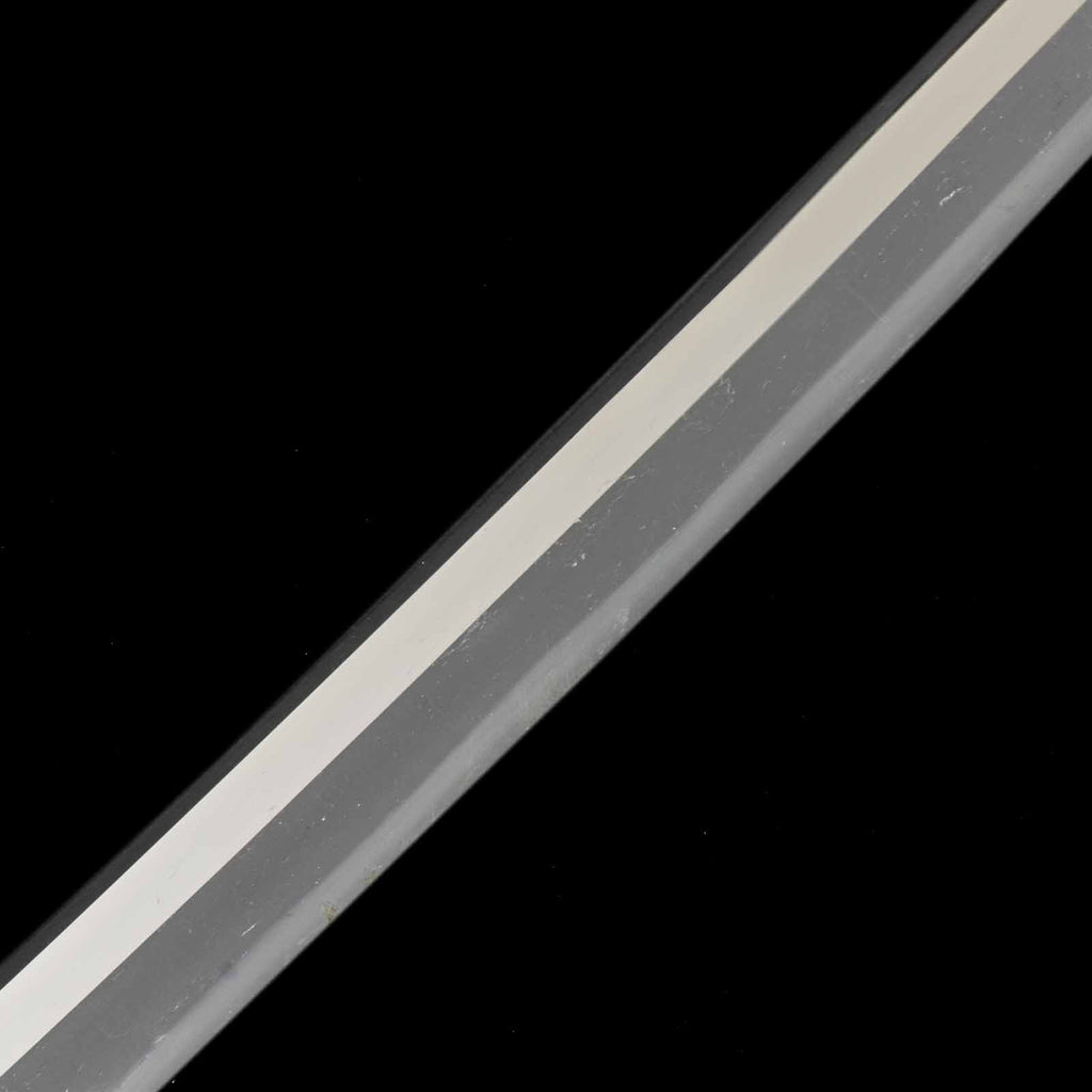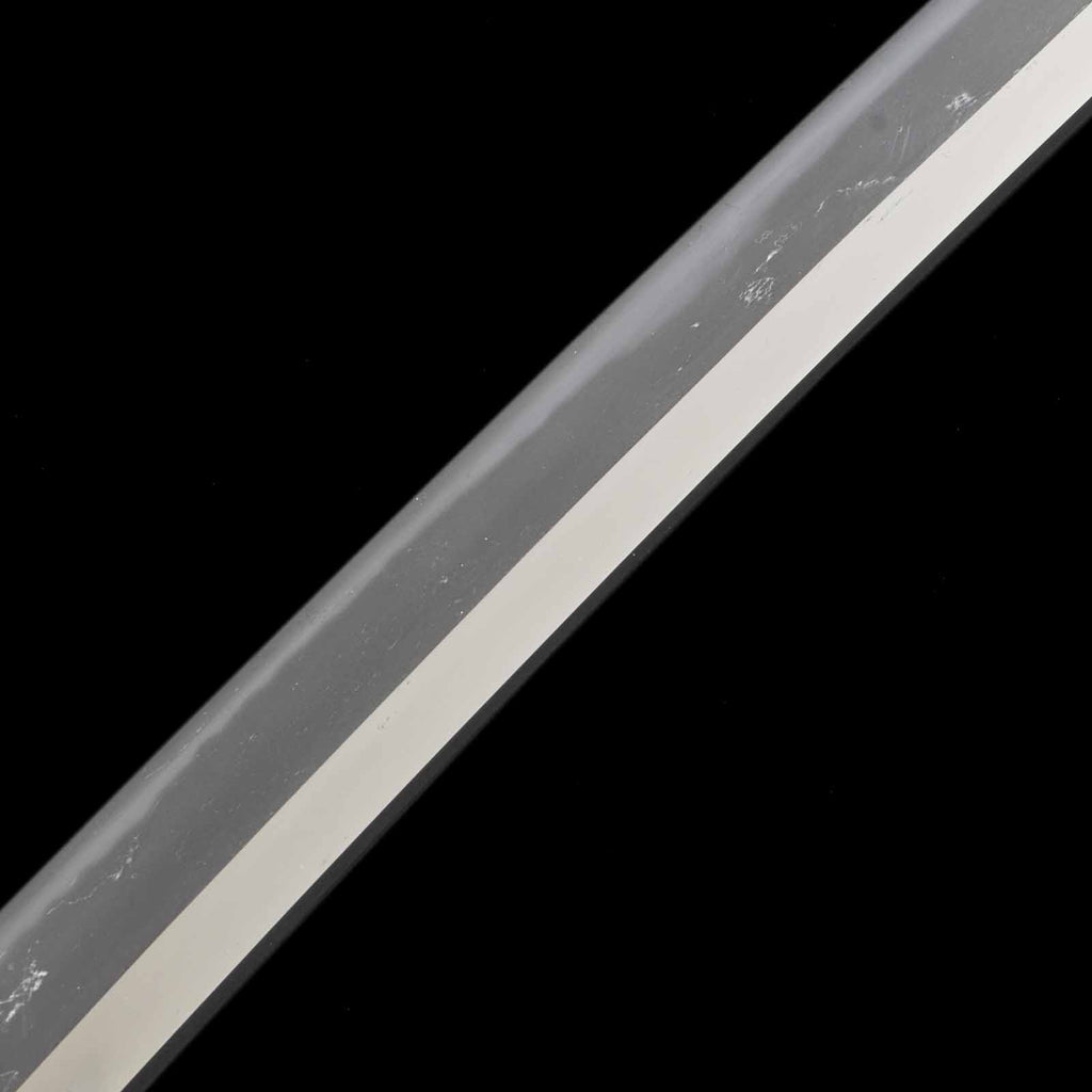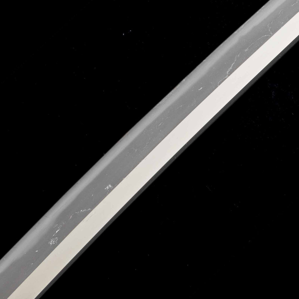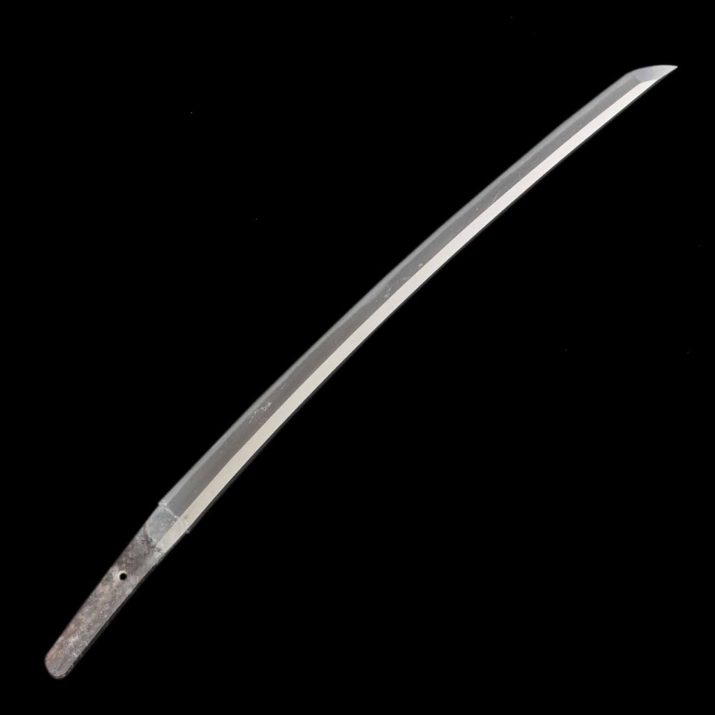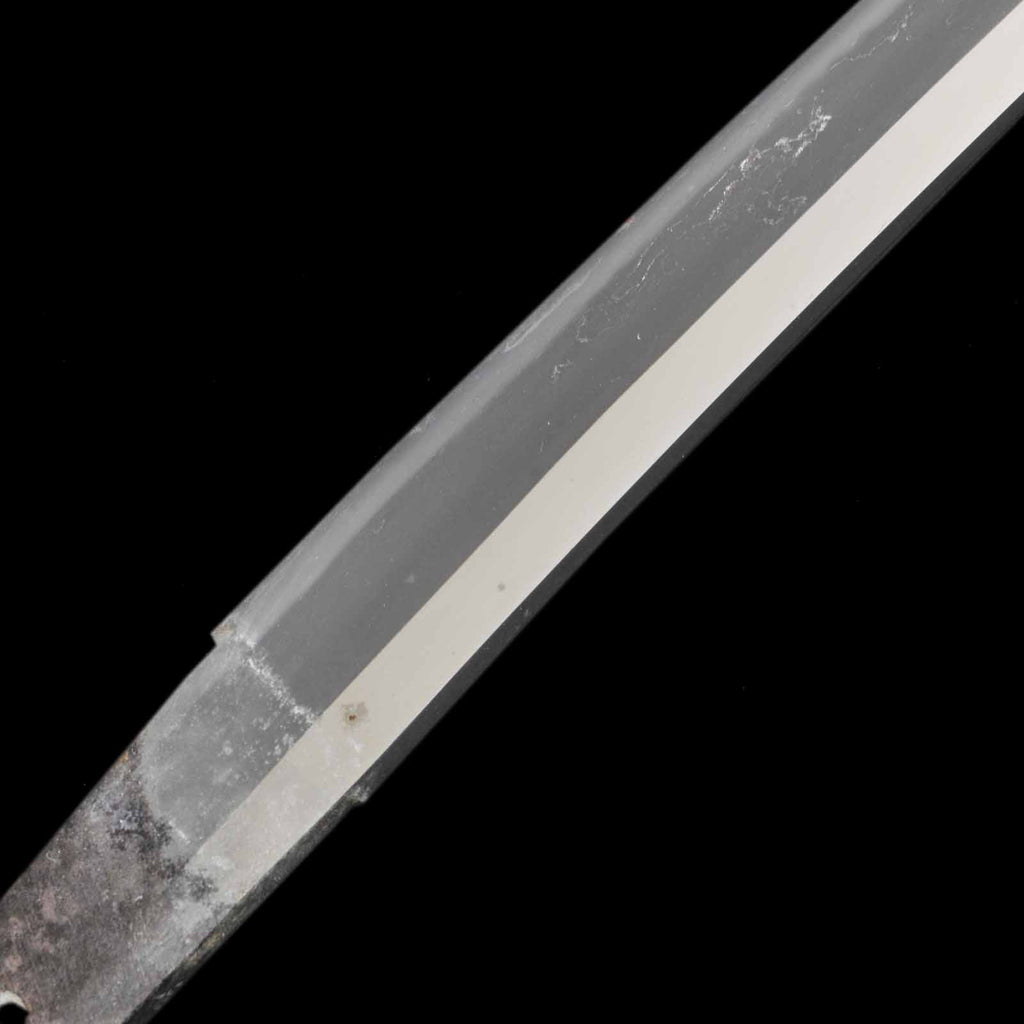 This sword has several kitae flaws and some signs of umegane, but overall it was preserved in very good condition. The itame jitetsu and Hoso-suguha Hamon create a very elegant atmosphere. The curvature is a little more on the hand side than the center, which is known as koshizori. The koshirae on the shirasaya is also uncompromisingly excellent.