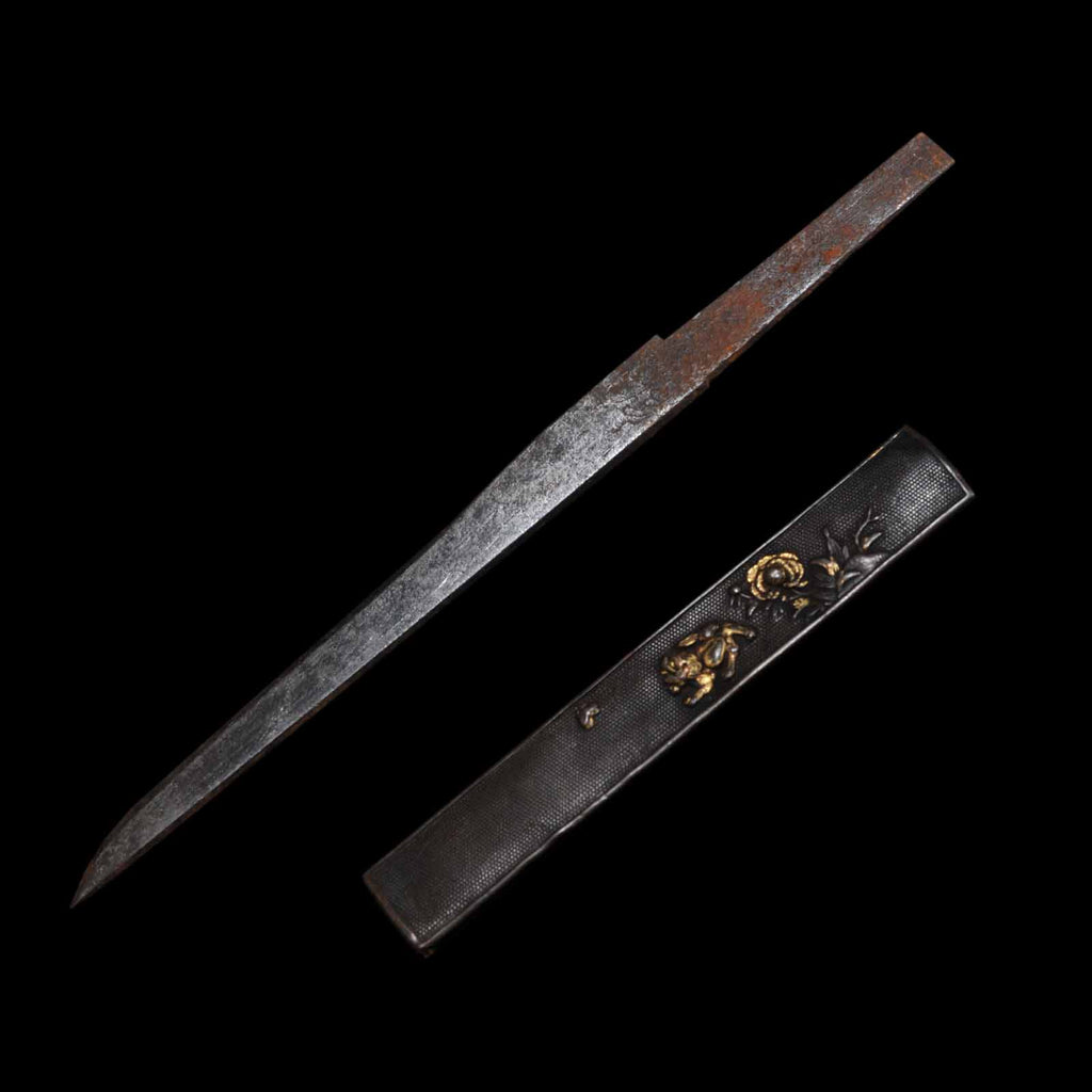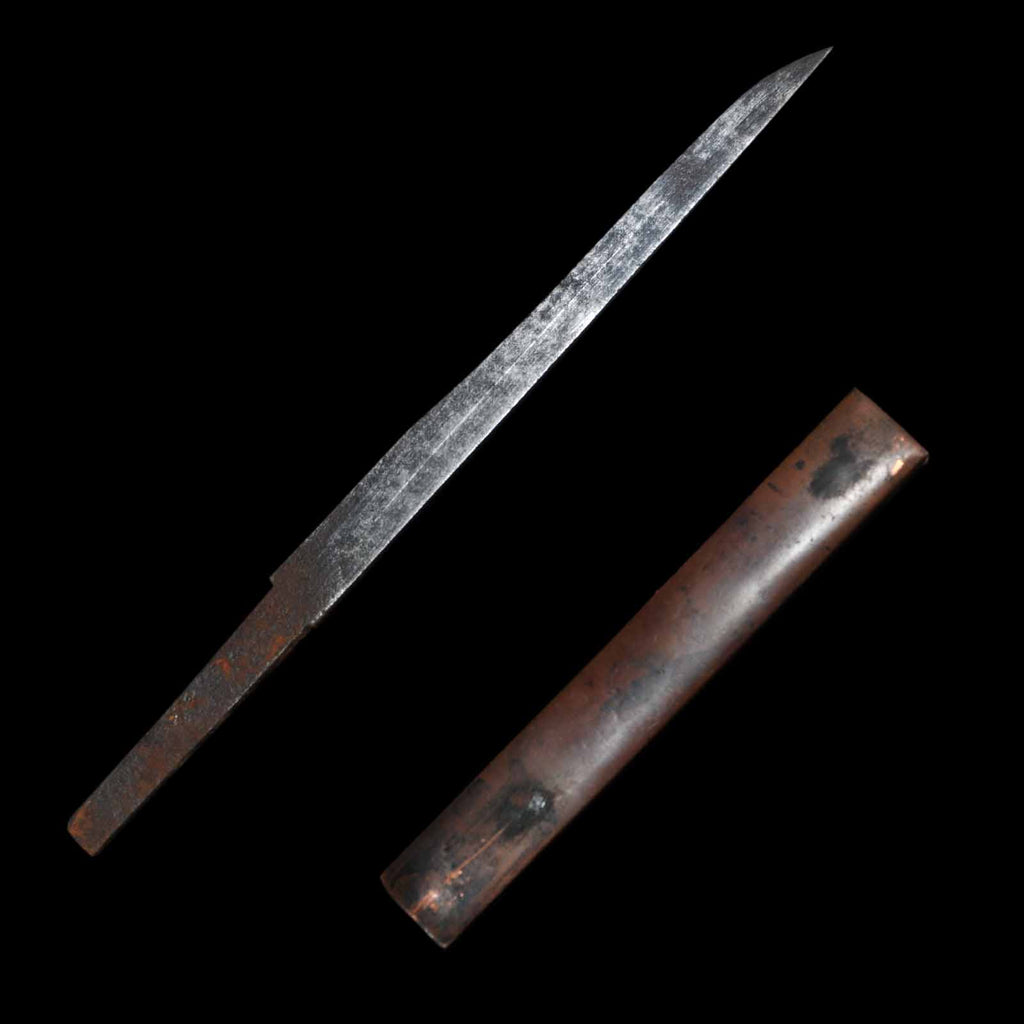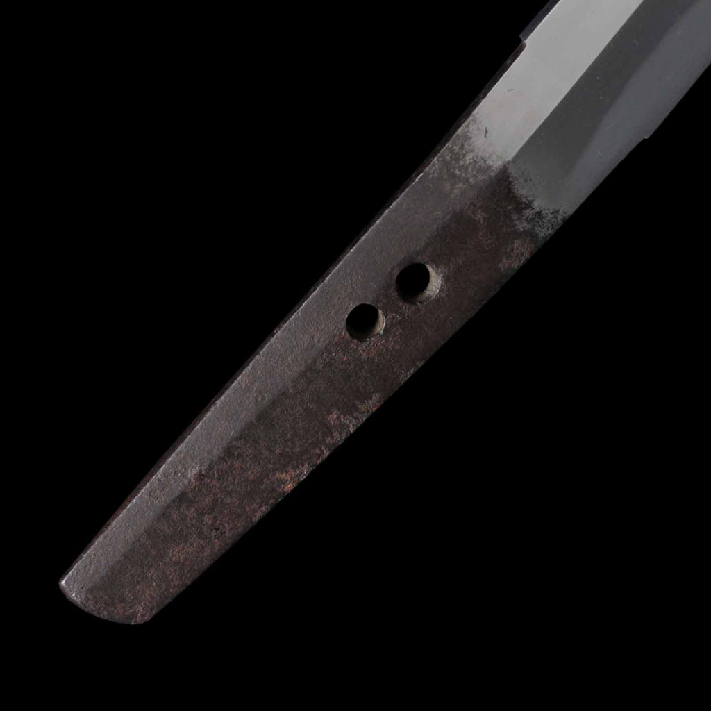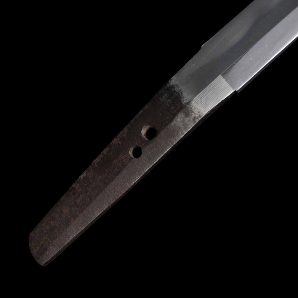 A very well-preserved Koto-period Shobu-dukuri wakizashi has just arrived. Shobu-zukuri, so called because of its resemblance to the leaves of the shobu (Japanese iris), were mostly made in the mid to late Muromachi period. Its most popular feature is the absence of yokote on the blade and the shinogi-sujii extending all the way to the kissaki.