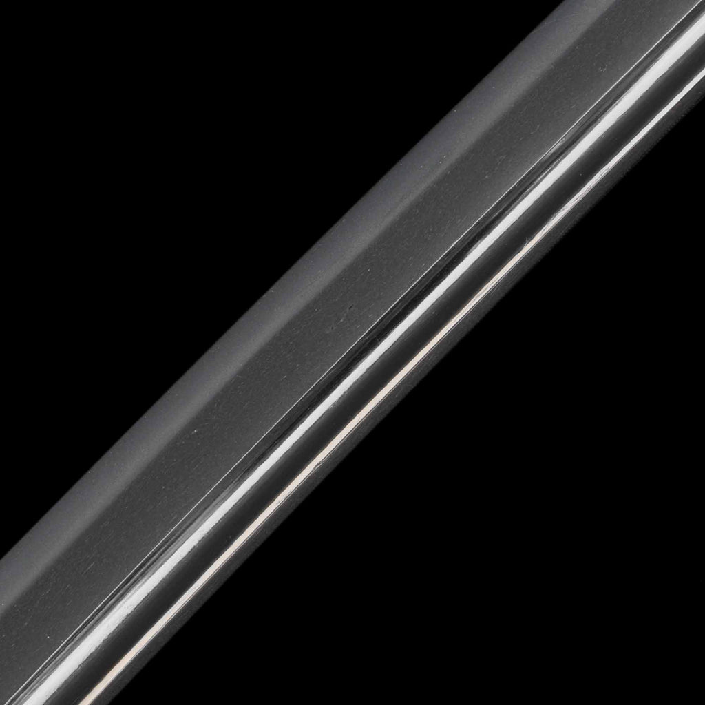 The blade's preservation is truly remarkable considering the era it was forged, befitting its Tokubetsu Hozon certification. The jigane displays a well-ordered itame grain pattern, interspersed with visible hataki such as chikei and yubashiri. The hamon features a refined, narrow, tight-grained sugiha pattern. A kakinagashi-hi groove is carved along both sides of the blade. The habaki features a chrysanthemum crest motif, lending a solemn impression. The nakago bears the inscription of the smith: Sunshu Ju Fujiwara Kanesada.