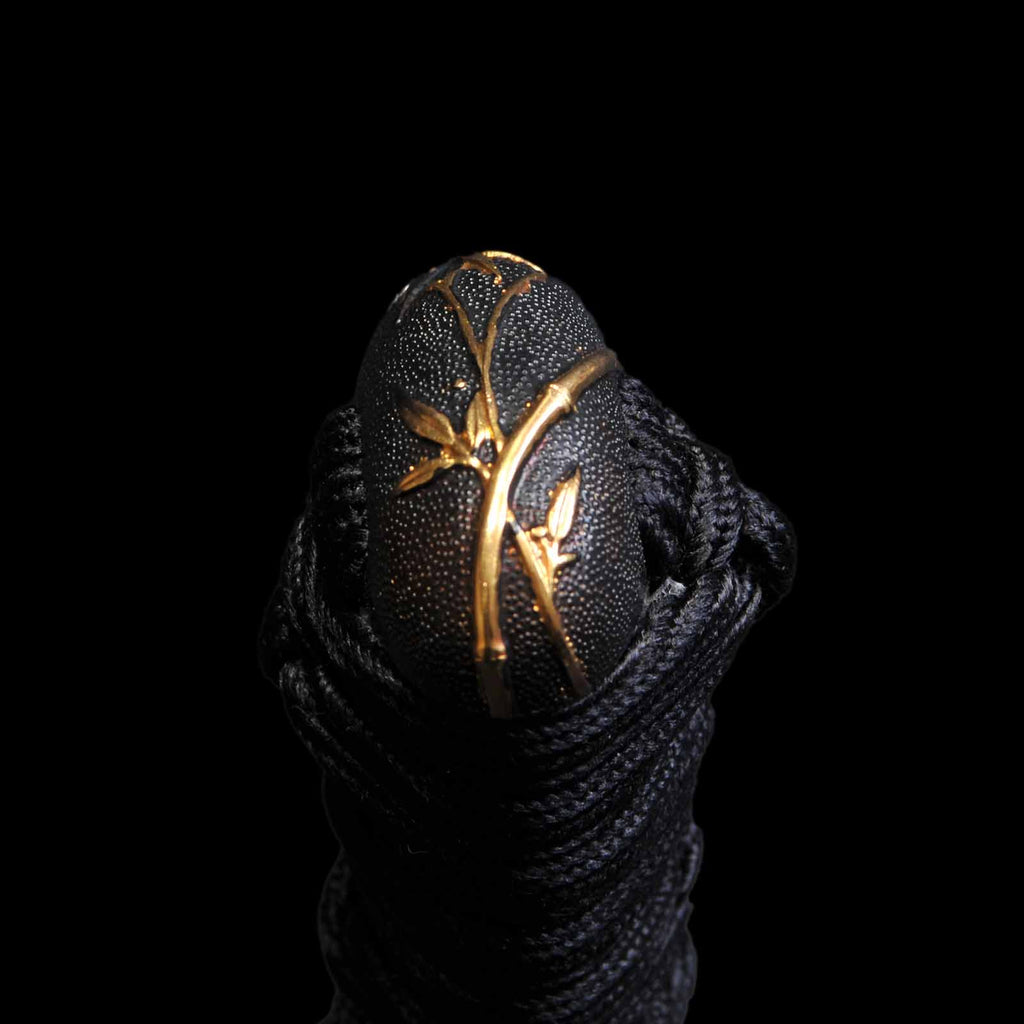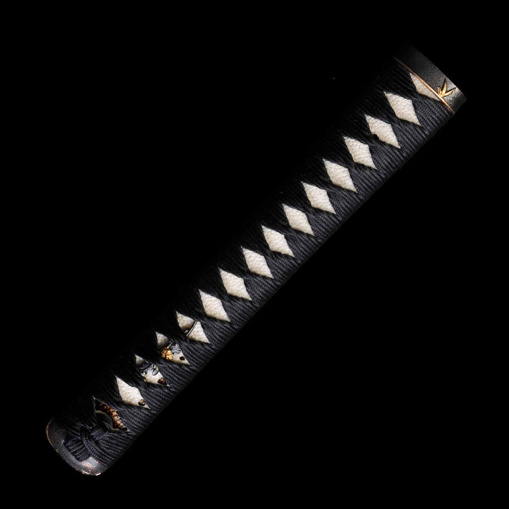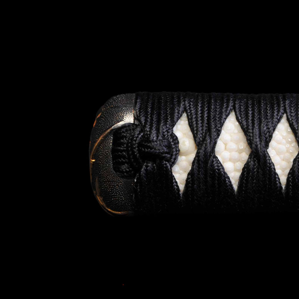 - Koshirae: Black silk tsuka wrapping with Kuro-ishime Saya