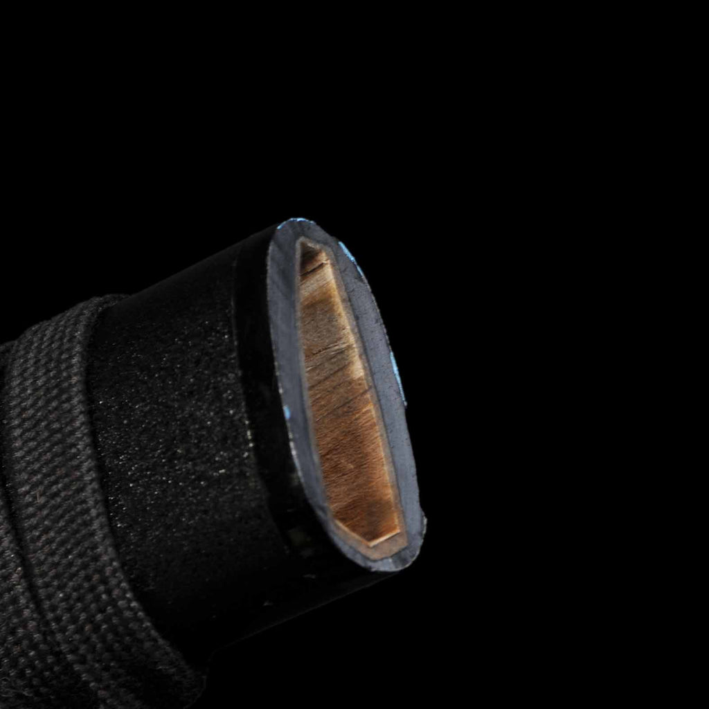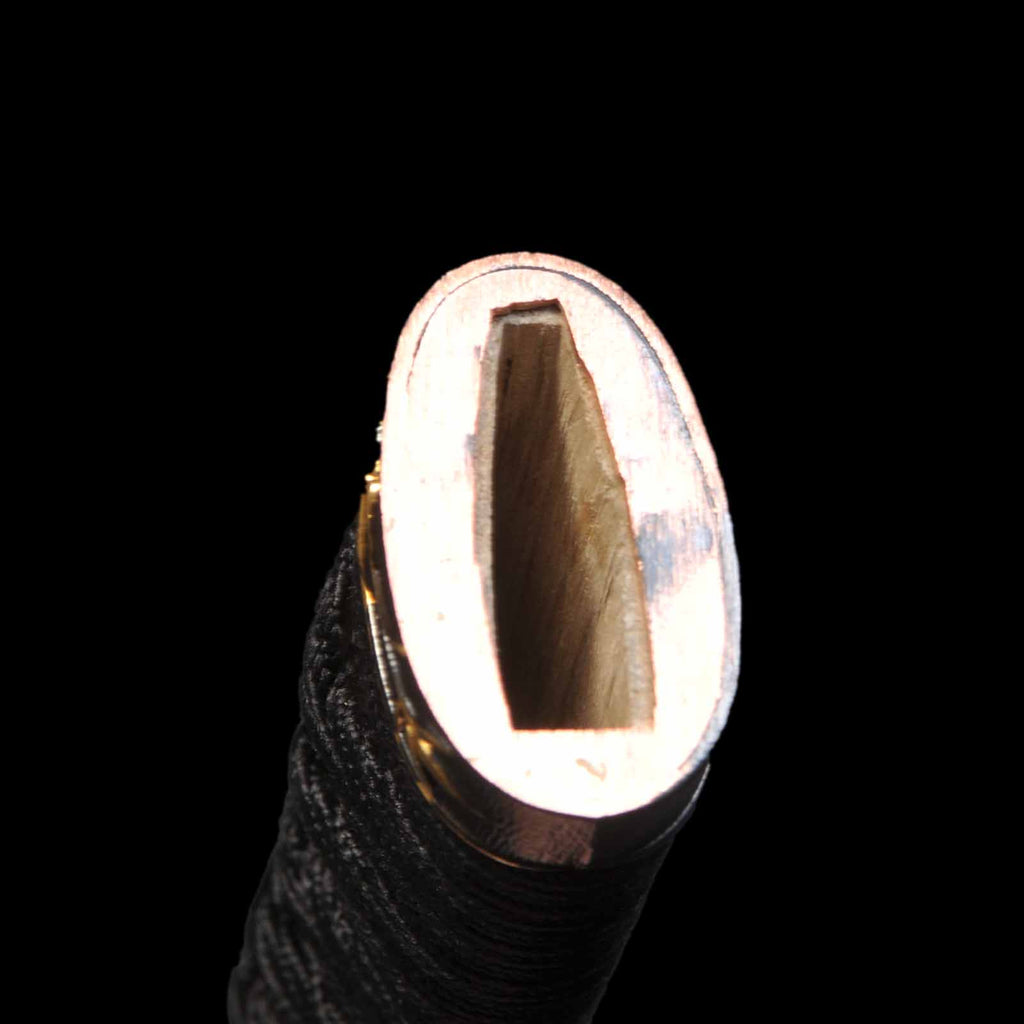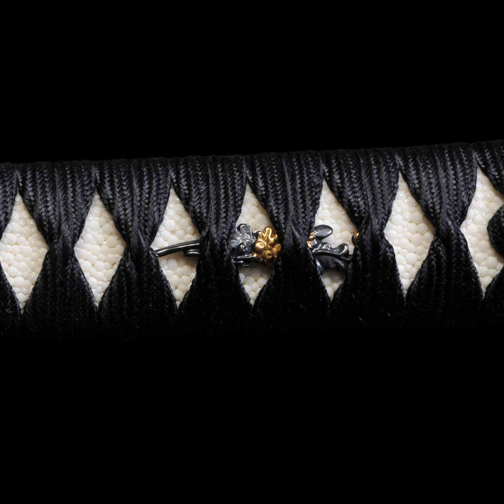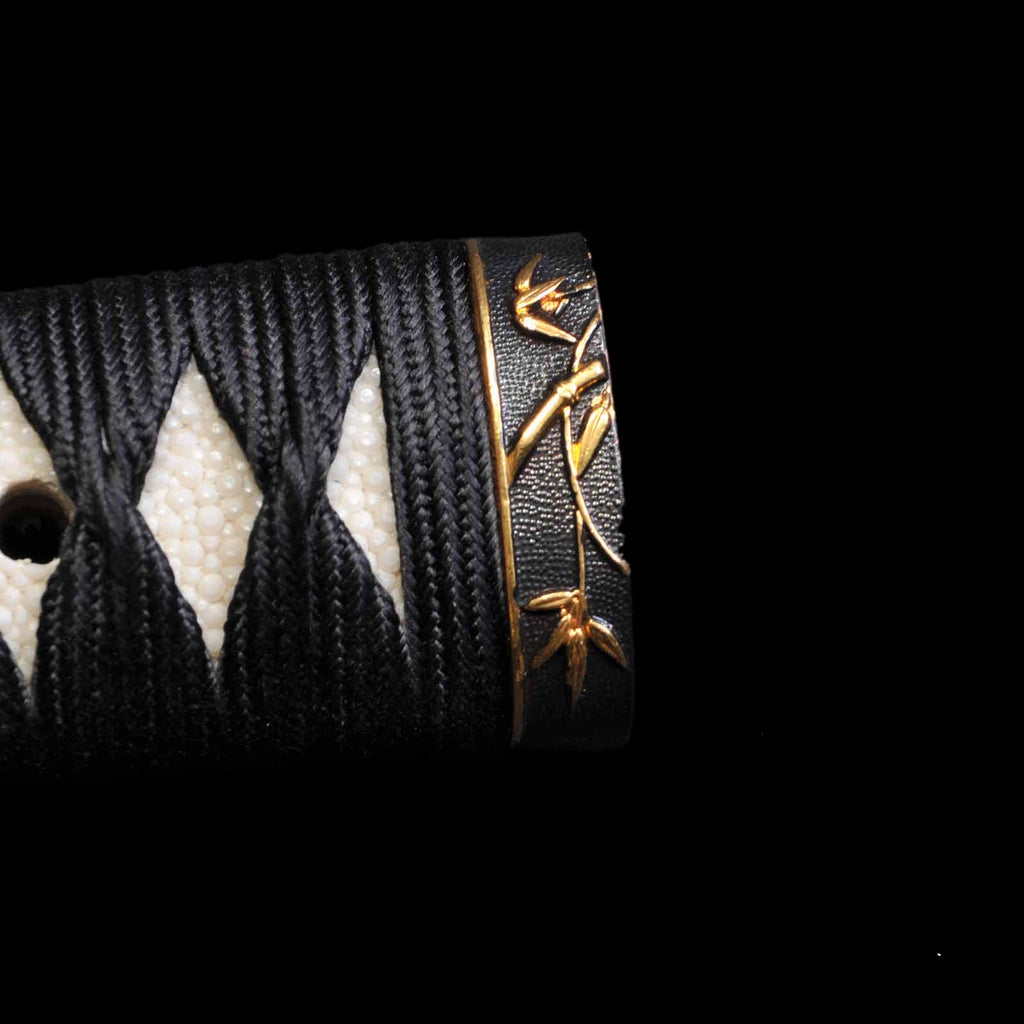 - Koshirae: Black silk tsuka wrapping with Kuro-ishime Saya