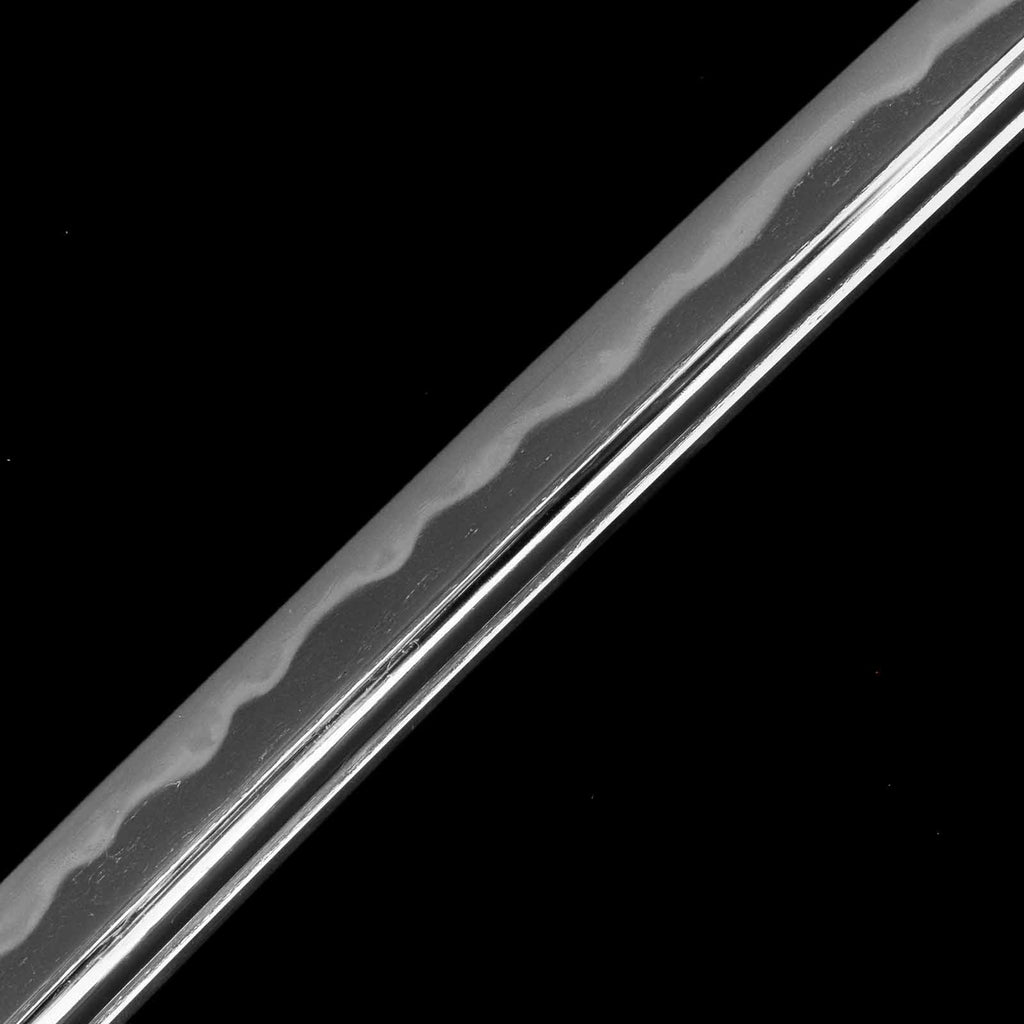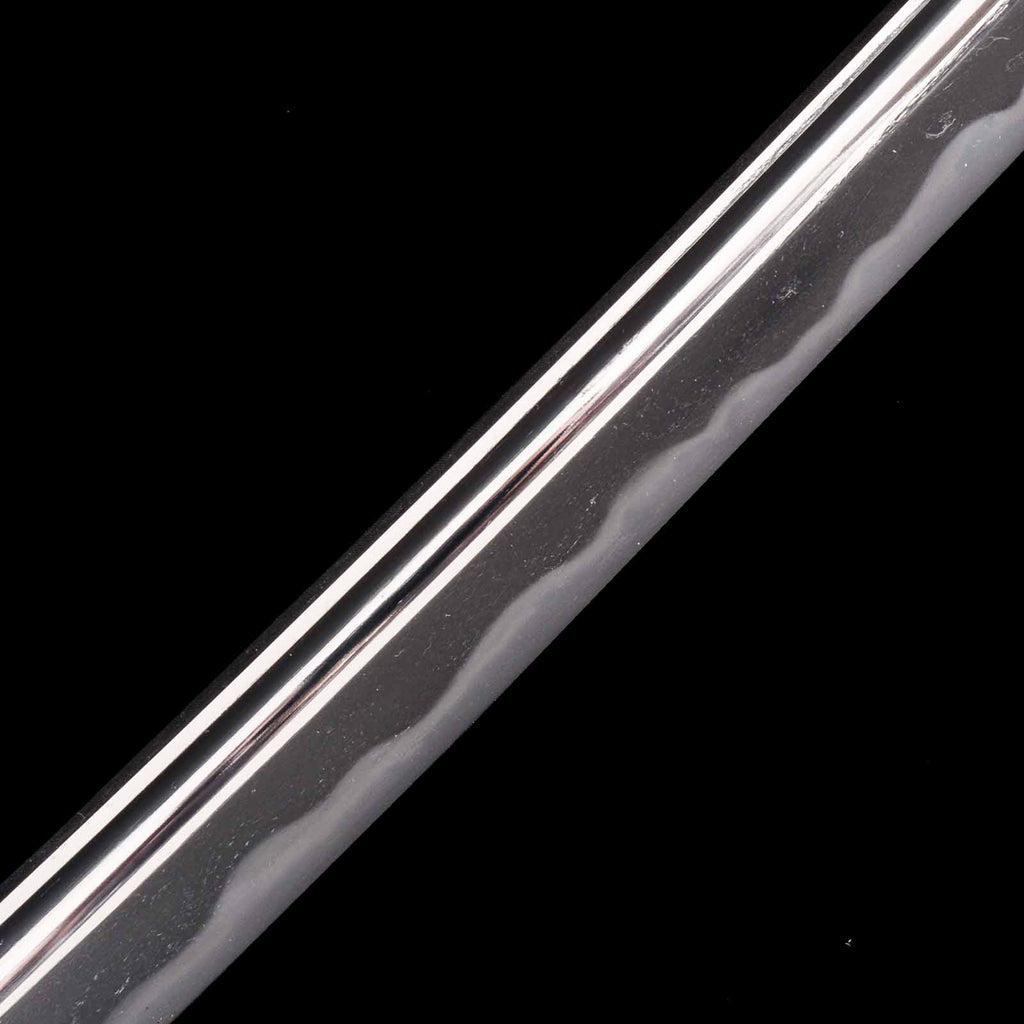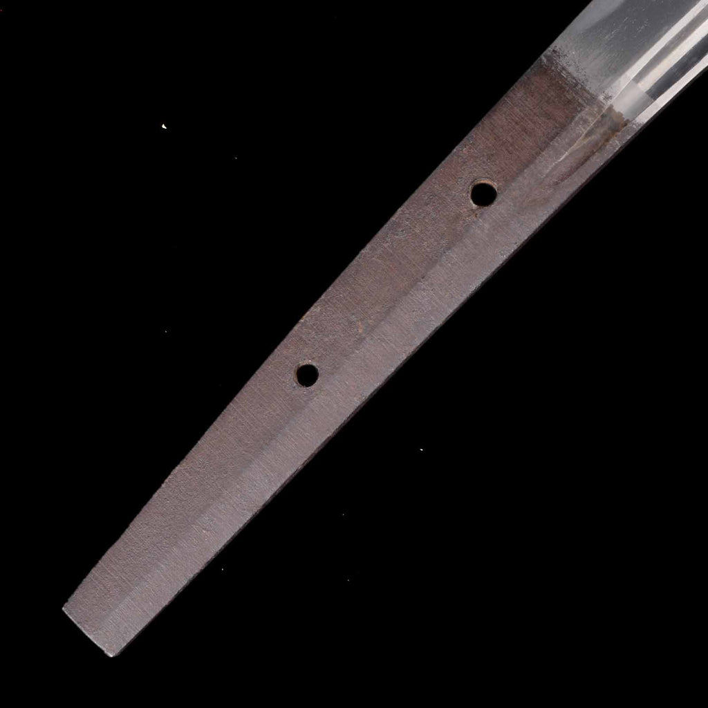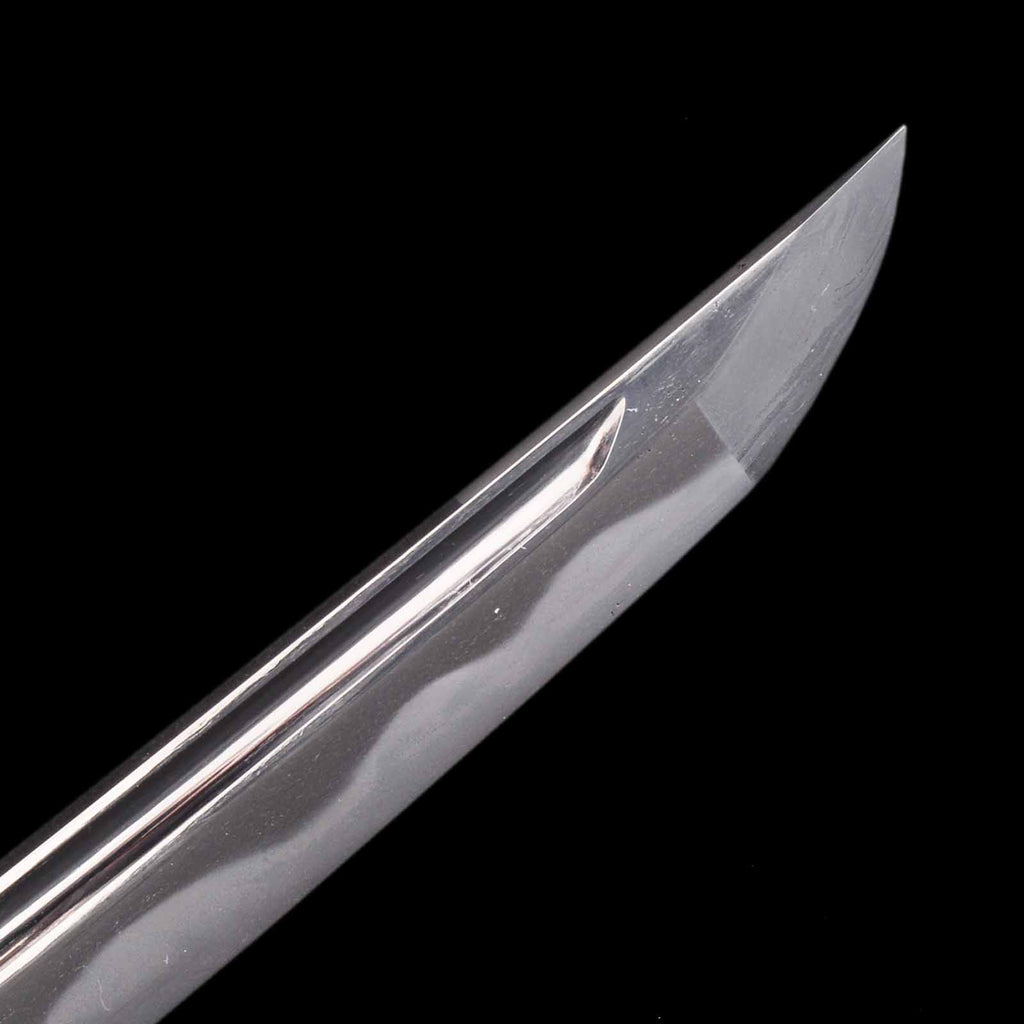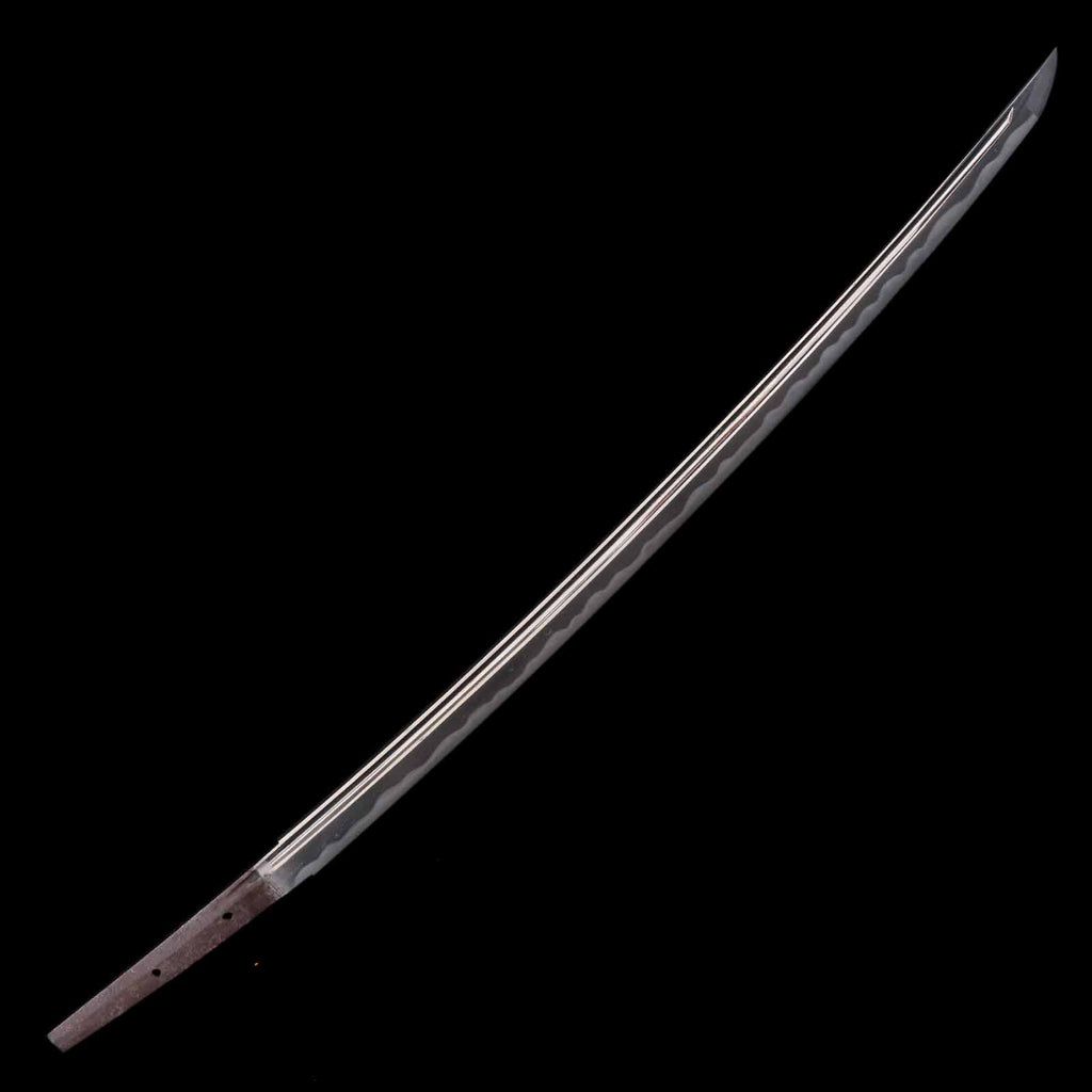 Considering its age, the blade's condition is remarkably good, showing almost no nicks, rust, or chips. The jigane features itame mixed with mokume, displaying patterns like yubashiri and chikei. The hamon features a prominent gunome pattern with niedeki, along with other patterns like ashi. Both sides of the blade are carved with Kakinagashi-style blood groove.