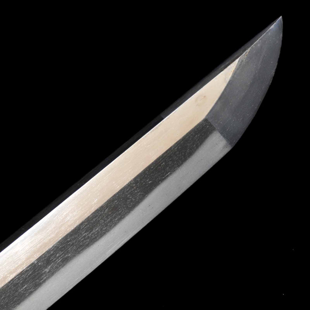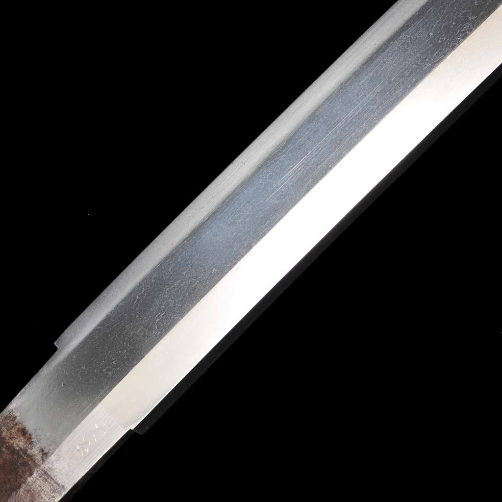The state of preservation is relatively clean for its age, with no flaws, chips, or rust. The hada is a mixture of itame and mokume, clearly visible and in a style that reminds us of works from the Koto period. It also has very active hataraki such as chikei and yubashiri. Furthermore, hamon is beautiful suguha and nie is very tight. The entire sword blade is beautiful and picturesque.