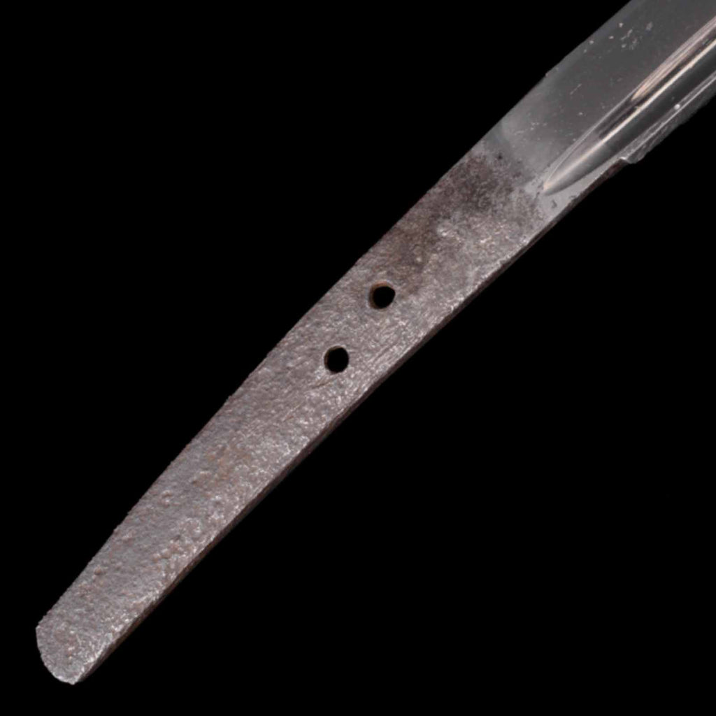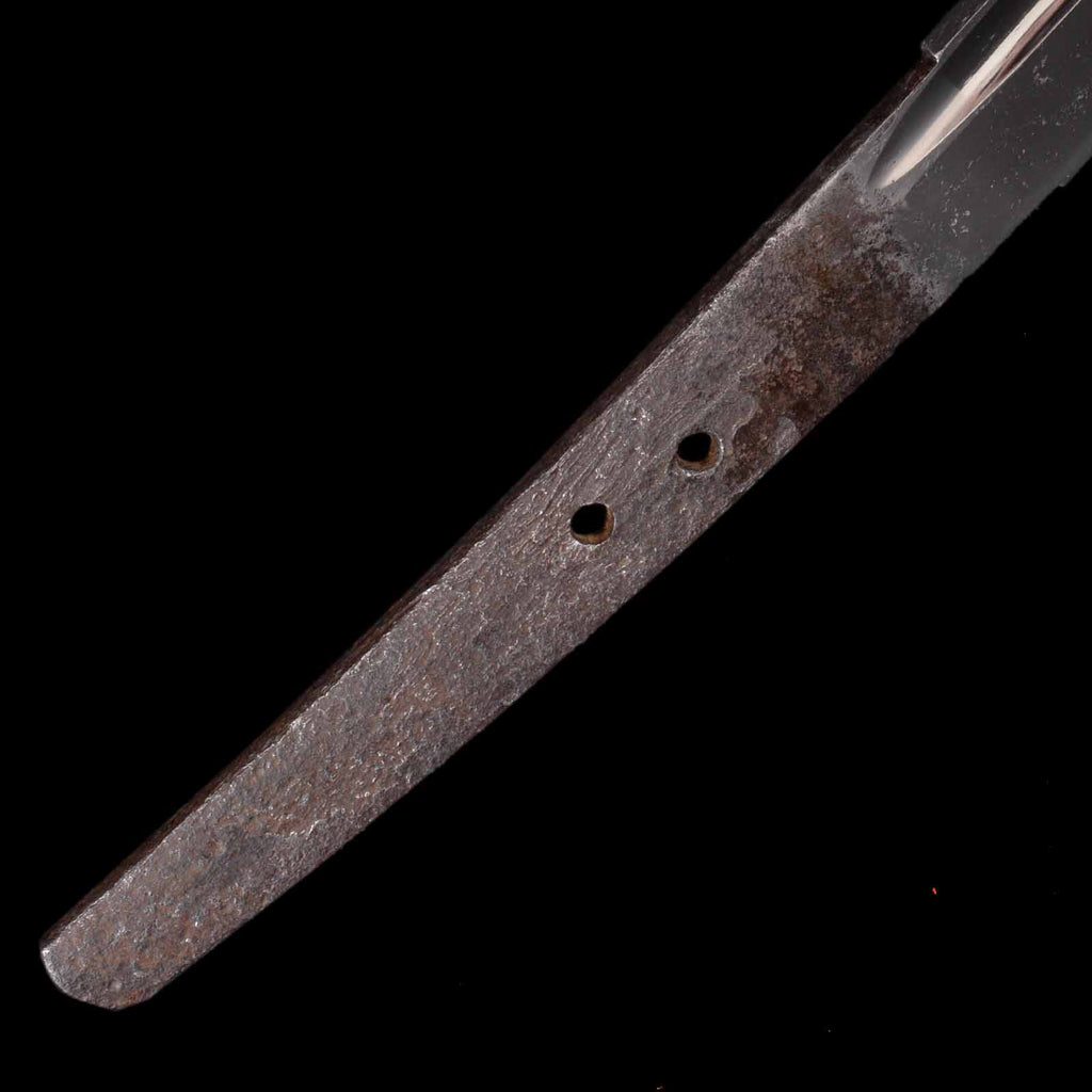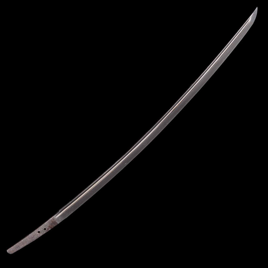 Kongo Hyoe is renowned as the pinnacle of cutting performance, a name among names in the elite. This piece features the earliest chestnut-shaped tang root characteristic of Kongo Hyoe, suggesting it is the work of Moritaka, the founder of the Kongo Hyoe lineage during the Kamakura period. Moritaka's works are highly prized. Kongo Hyoe supplied the shogunate with exceptionally sharp weapons during the Mongol invasions of the Kamakura period, aiding in repelling the Mongol forces. Consequently, these swords became objects of reverence.