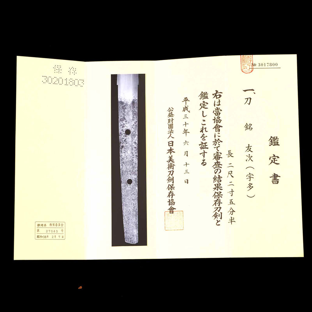 Katana - Tomotsugu - NBTHK Hozon Certificate - Shirasaya - Suriage Nakago - Koto Era - Shizuoka 27043