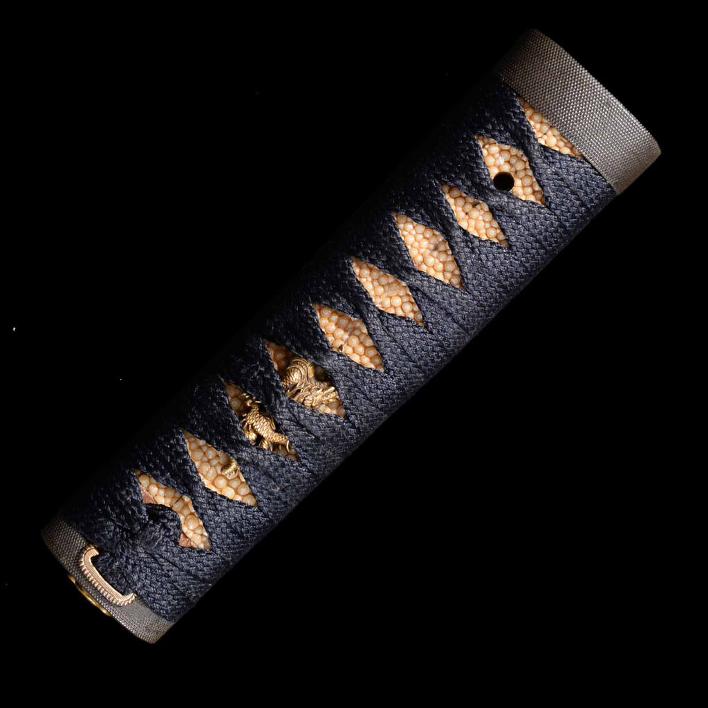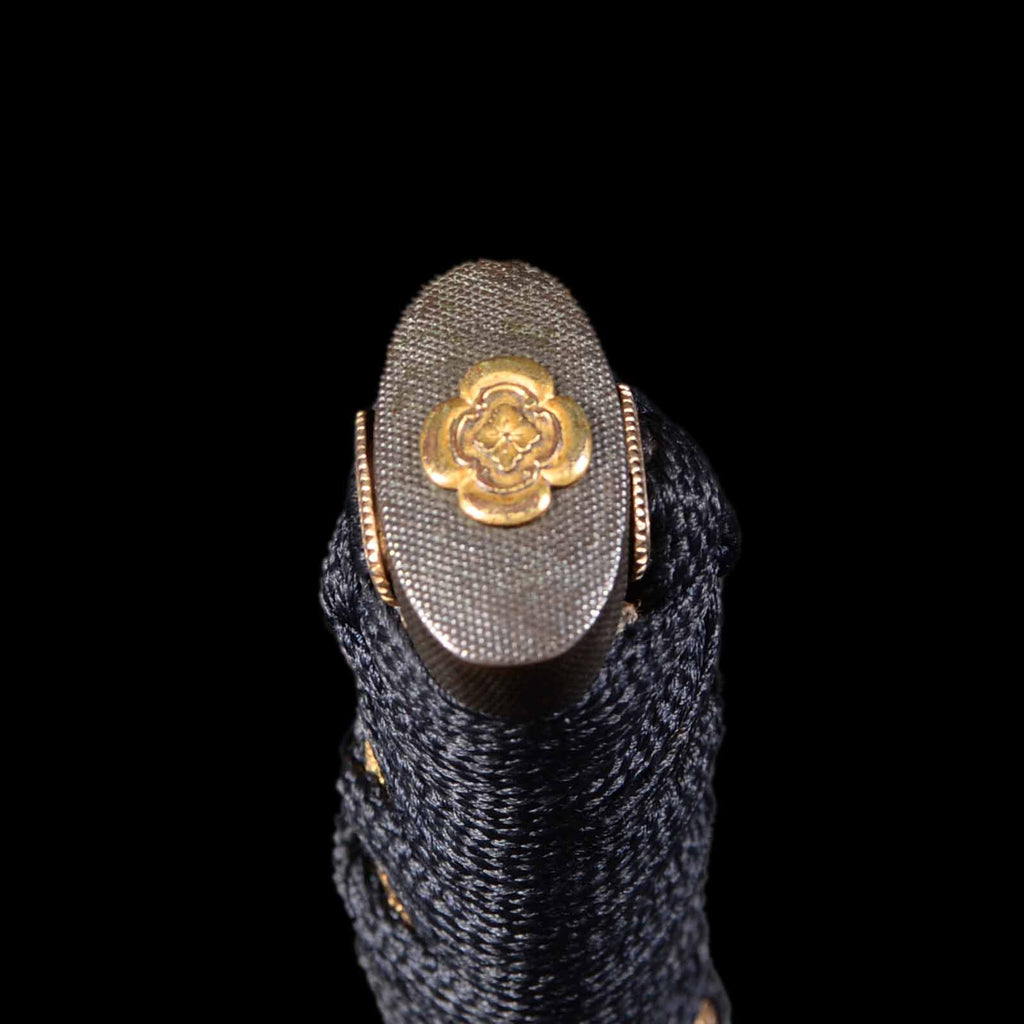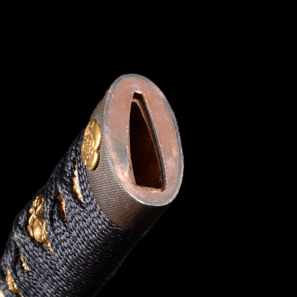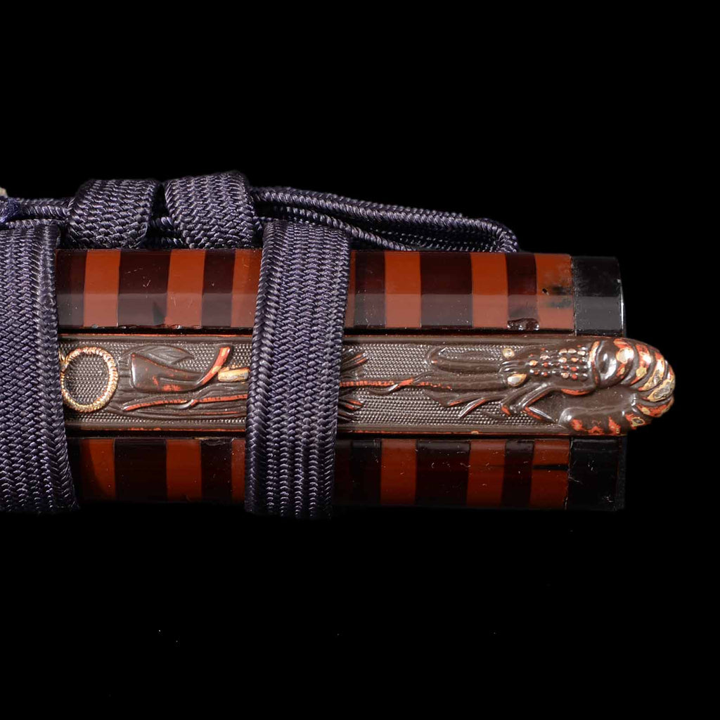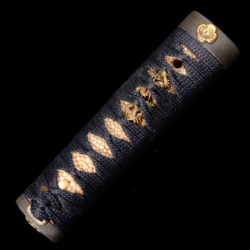 - Koshirae: Black silk wrapped Tsuka with Hirumaki lacquered Saya