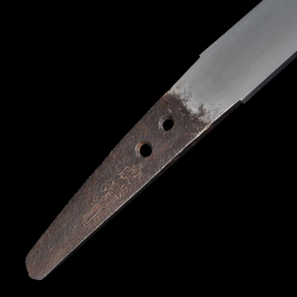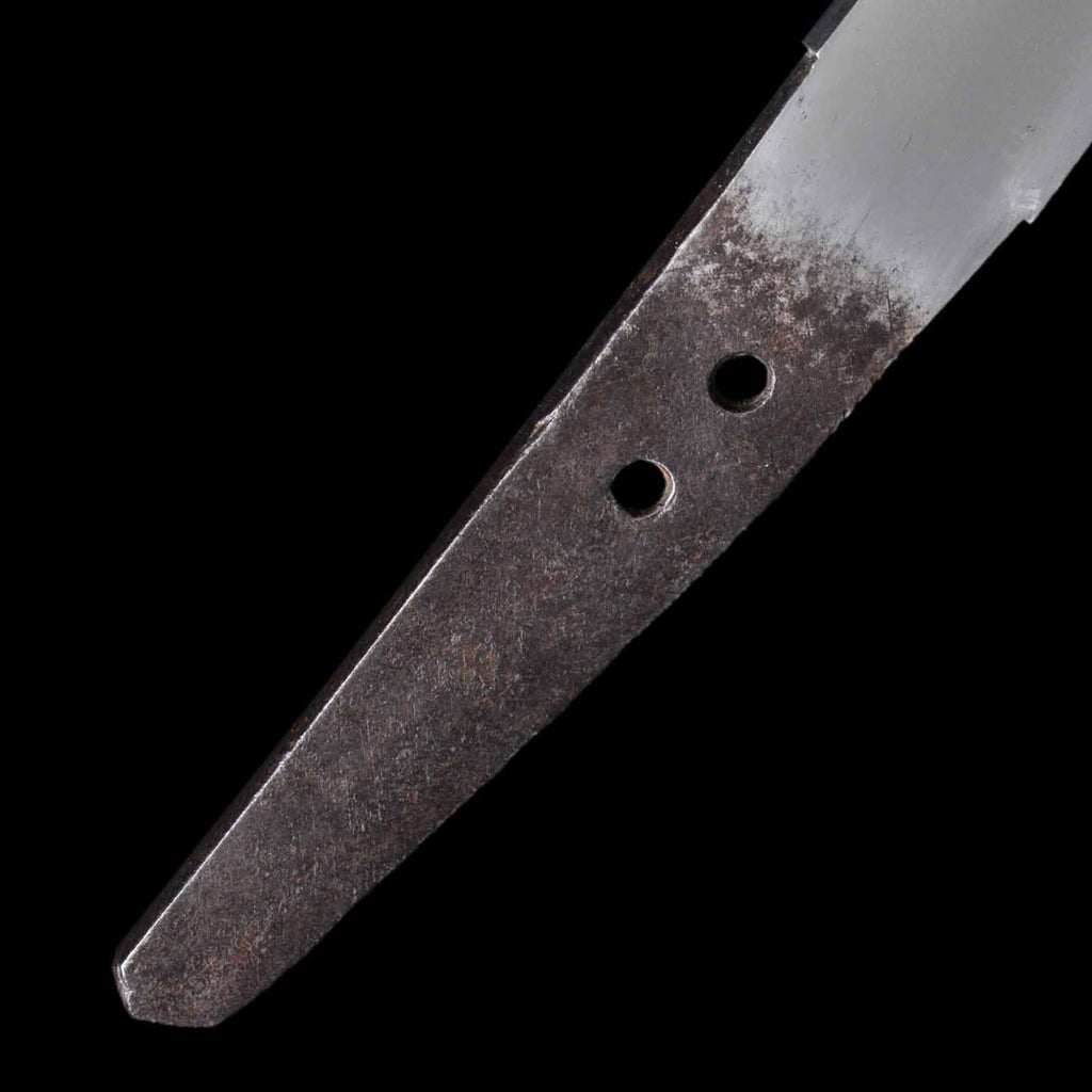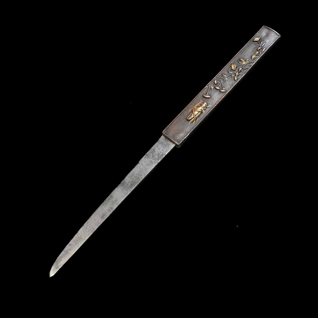 This dagger is thought to be a work from the Shinto period. The koshirae is equipped with metal fittings of the period and kozuka. The hakeme lacquered scabbard has a very high quality finish. The habaki is also of high quality with two pieces. It is not only an introduction to the appreciation of Japanese swords, but is also highly valuable as a collection piece.