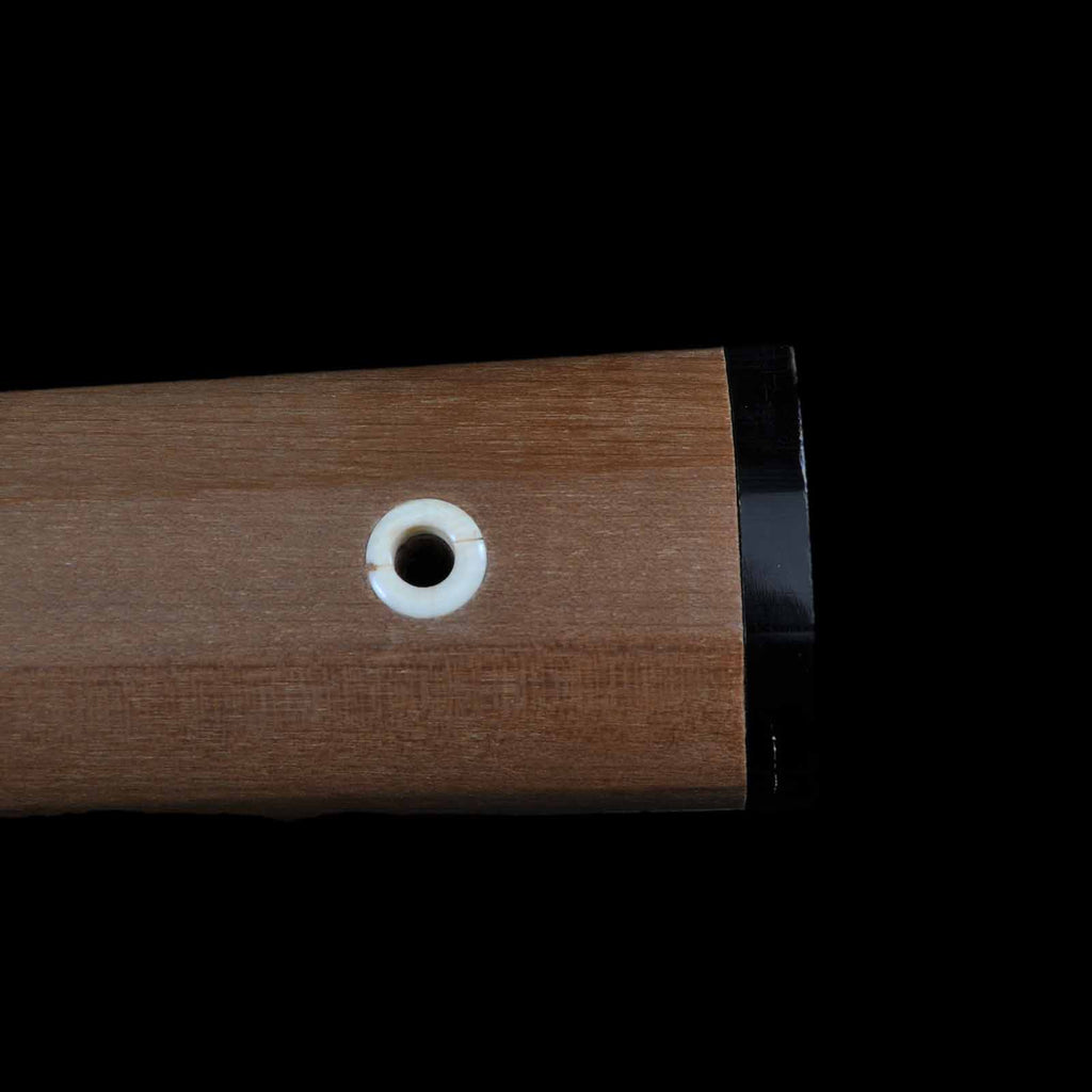 The habaki features an exquisite, painting-like engraving reminiscent of an emaki scroll, creating a work of great refinement that captivates the viewer. Due to its outstanding quality, in August 2005, the Society for the Preservation of Japanese Art Swords authenticated this piece as a genuine Nobuyoshi work and later issued a certificate of appraisal recognizing its high preservation value.