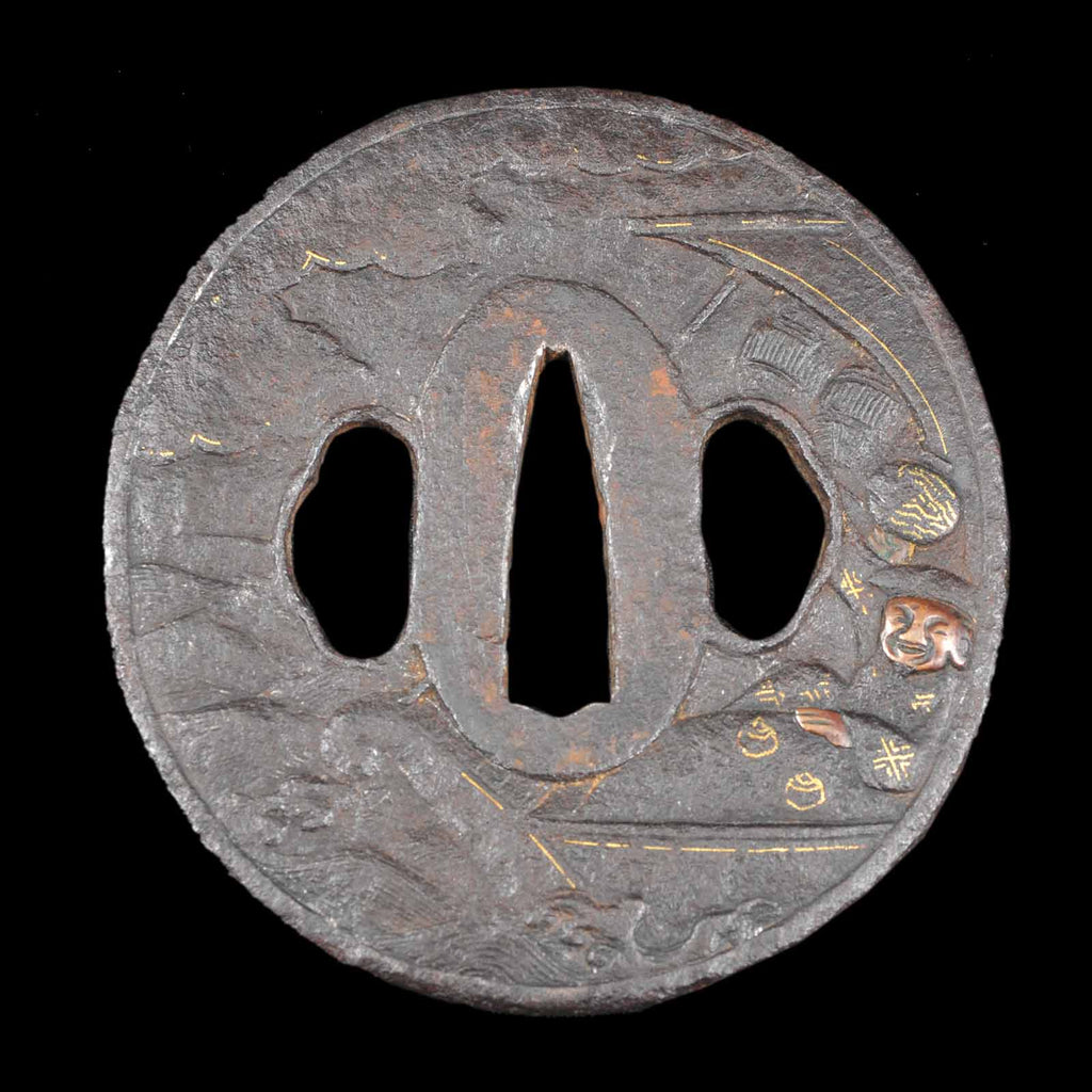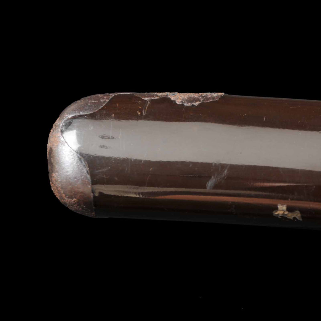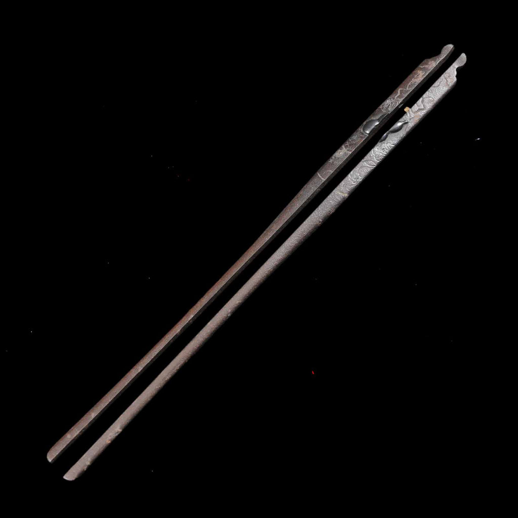 The sword is well preserved, polished and virtually free of flaws, making this a sound sword. The jigane is very clean with neat itame. Hamon has a wide gunome with some areas of fukuro-choji. The nakago is engraved with “Fuji... living in Bungo Takada”. Due to the suriage, the full name is unknown, but it can be assumed that it was made by a Fujiwara Takada family swordsmith of the Shinto period. Fujiwara Takada refers to a group of swordsmiths who made swords in Bungo Takada (present-day Oita Prefecture) from the Azuchi-Momoyama period onward, and their works. Swords made in this region during the Koto period are known as taira takada, and were popular among samurai as a brand of high-quality katana from that time. The tsuba, fuchigashira, menuki, kojiri, and wari-kogai on the koshirae are all consistent with the gourd theme. Unfortunately, the kozuka is missing, but the exterior gives off the atmosphere of the period. The tsuka has been rewound in recent years.