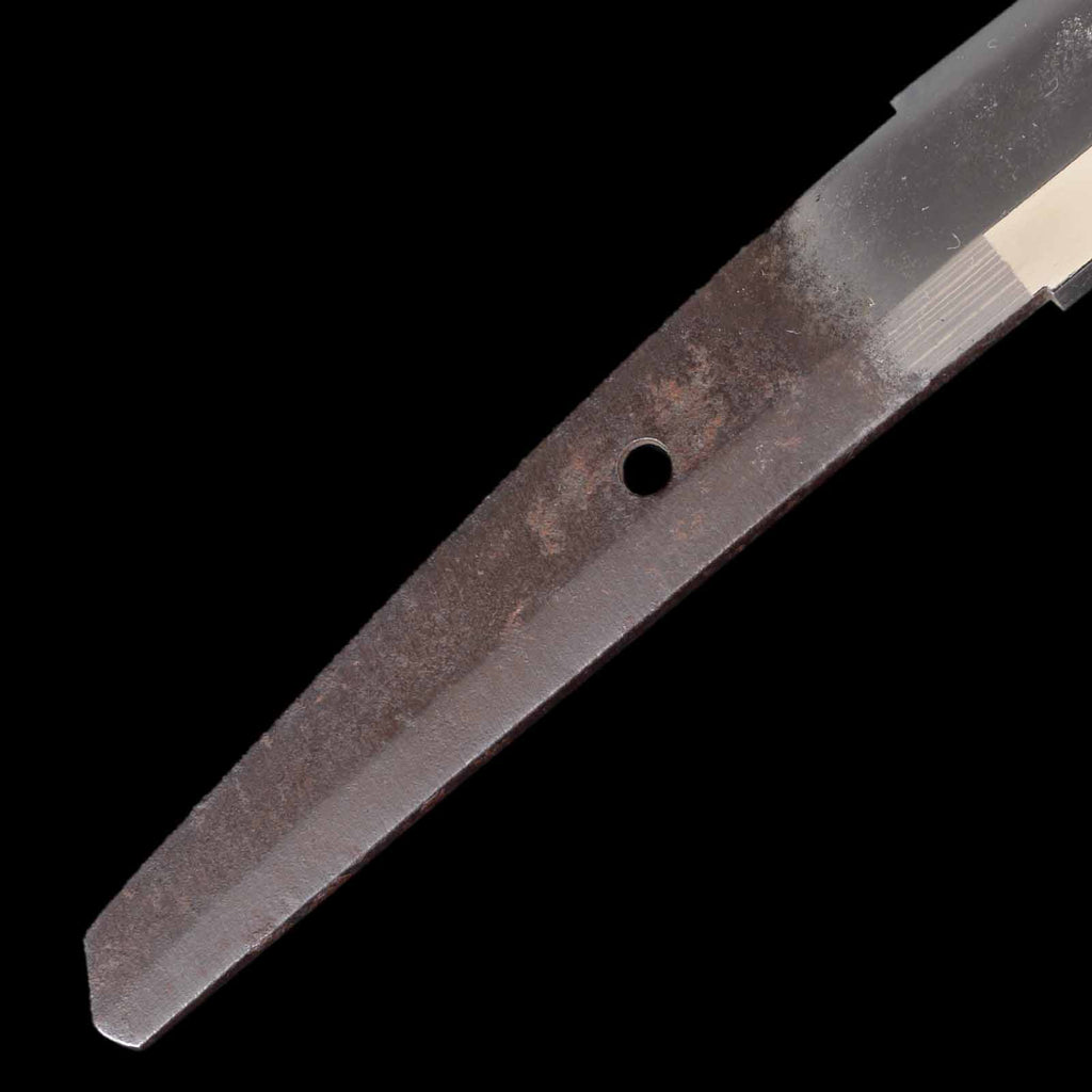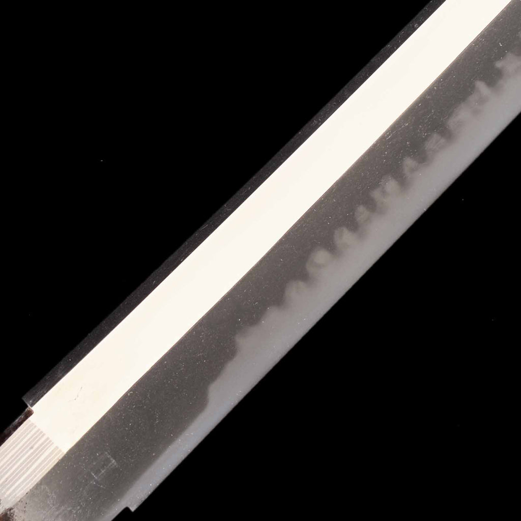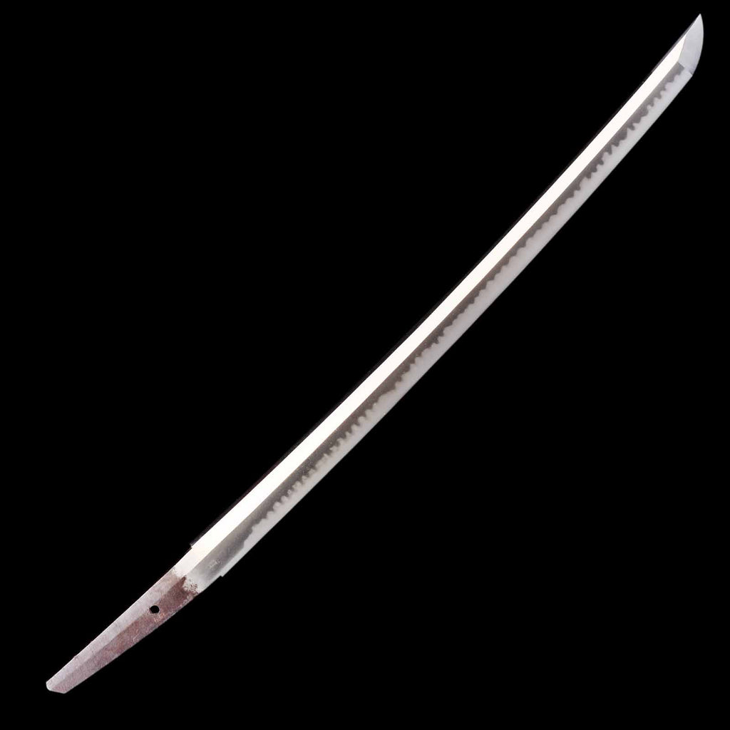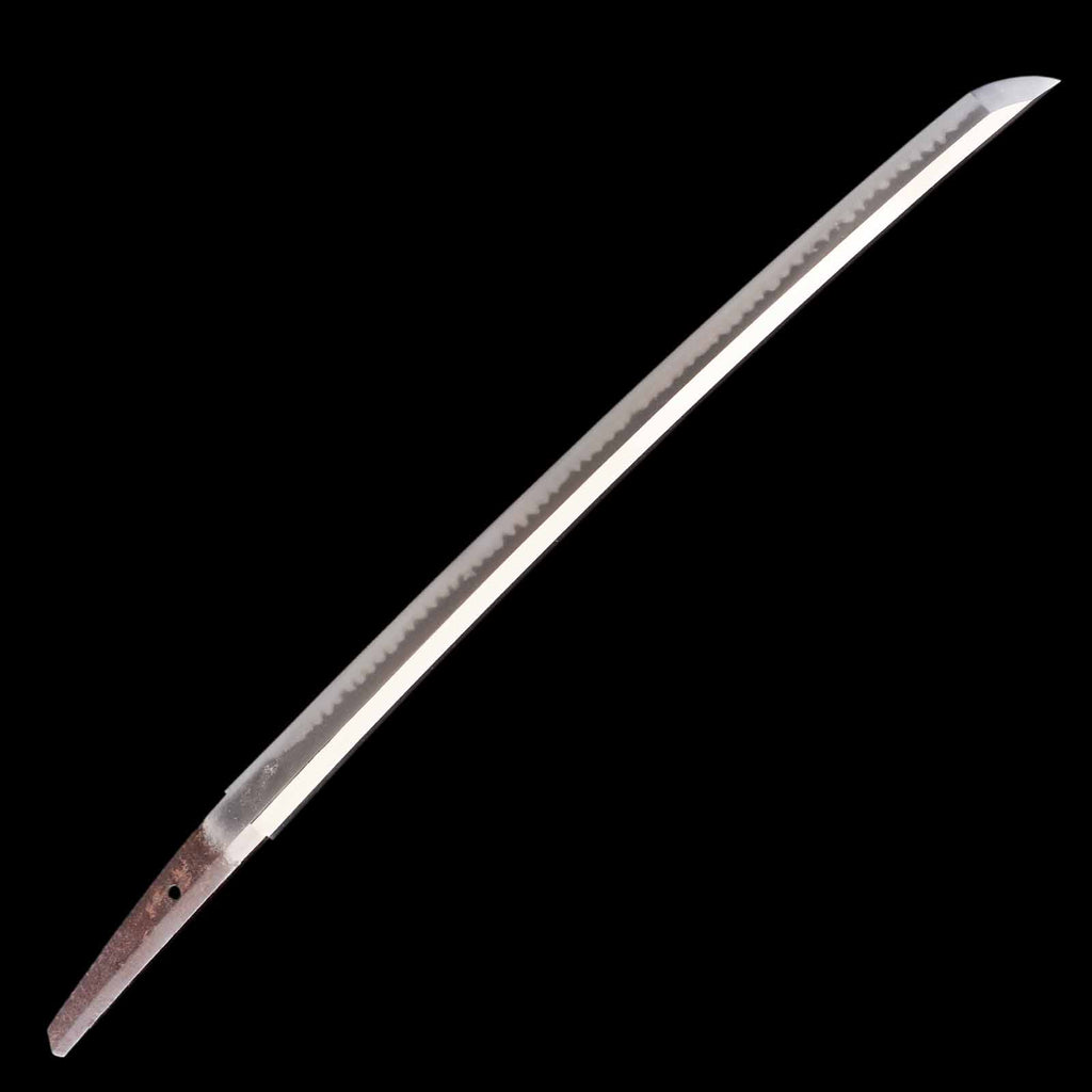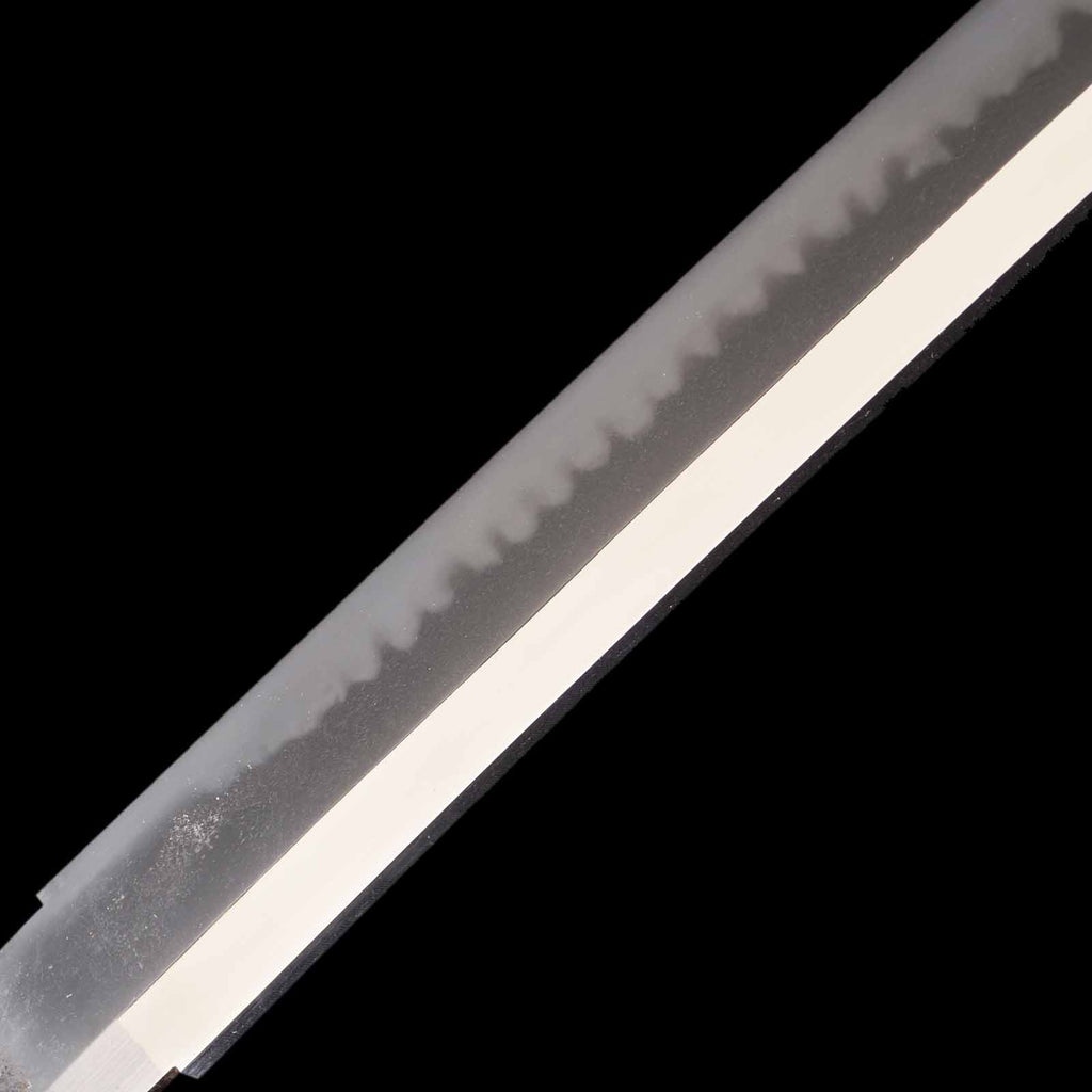 The blade is in exceptionally fine condition, uniformly polished throughout, with absolutely no flaws such as nicks, rust, or chips. It is truly a sound piece. The jigane exhibits a very well-packed itame grain. The hamon, with its uniformly spaced gunome, distinctly reflects the characteristic style of Seki. It features a bright, well-defined nioiguchi, and the hamon itself is nioideki. It also exhibits yakidashi, a feature commonly seen in works from the Shinto period.
