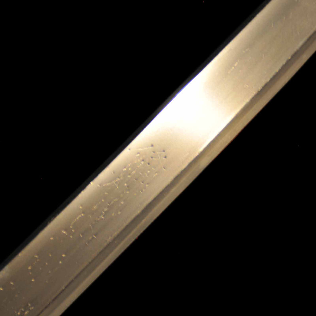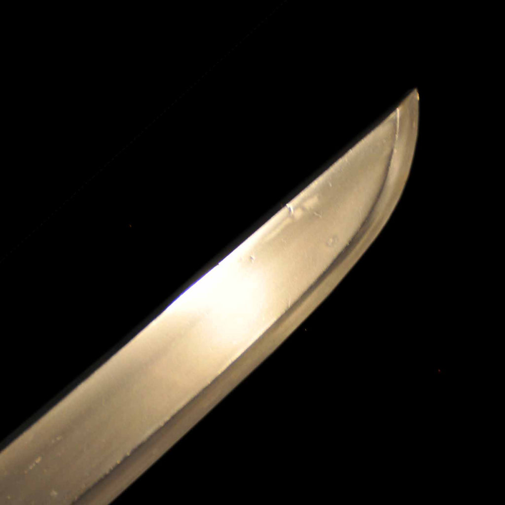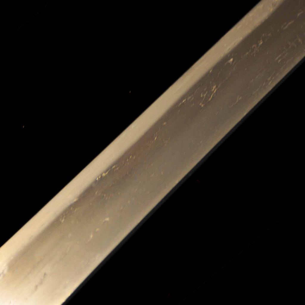Unfortunately, this sword has numerous chisel marks on the blade. This is probably due to someone's unsuccessful attempt to engrave a name on the blade, which spoils the aesthetic appeal of the sword. Otherwise, the sword is in good condition and the jitetsu and blade pattern are very interesting to appreciate.
