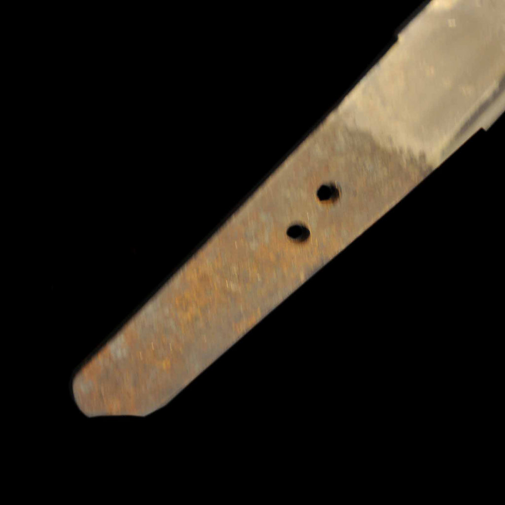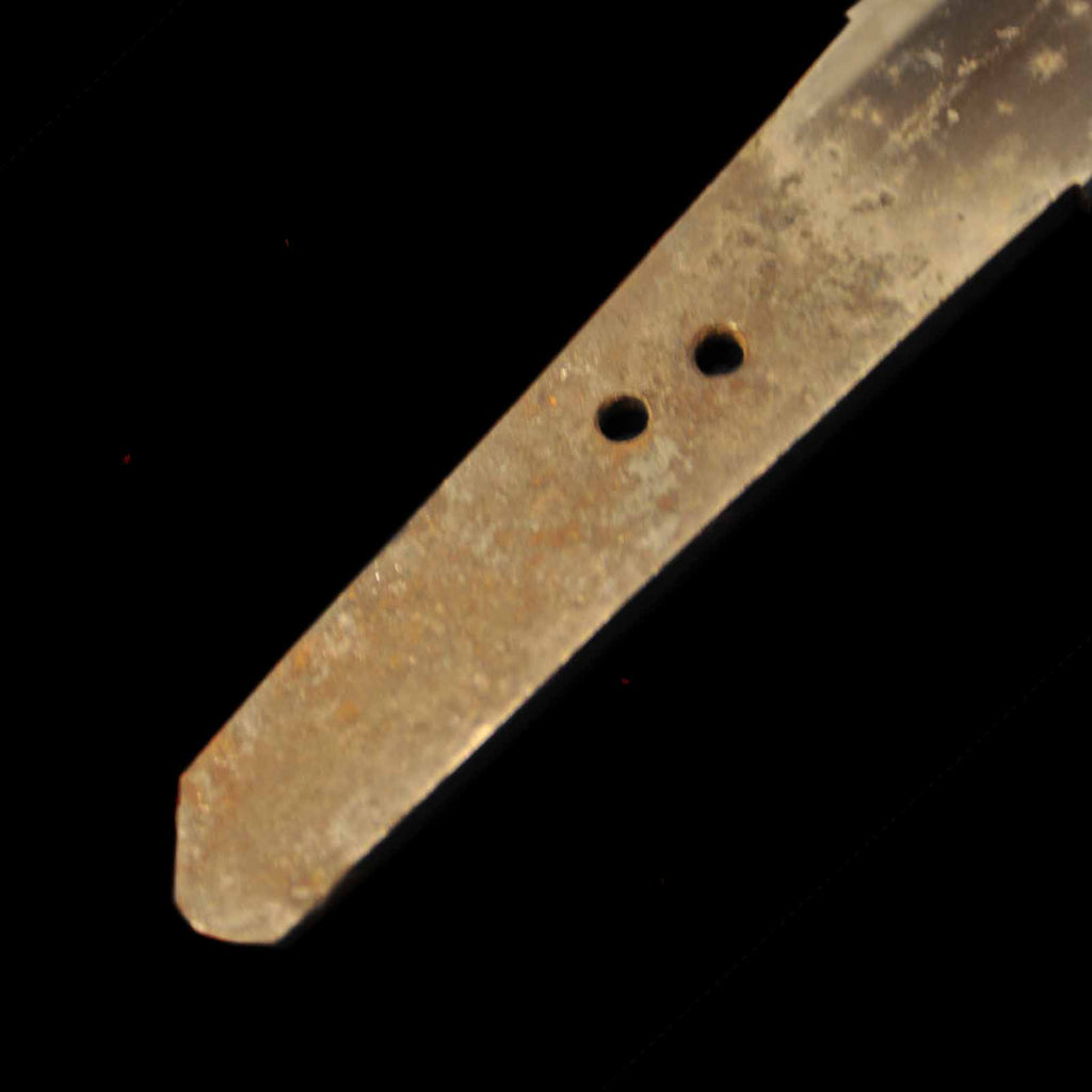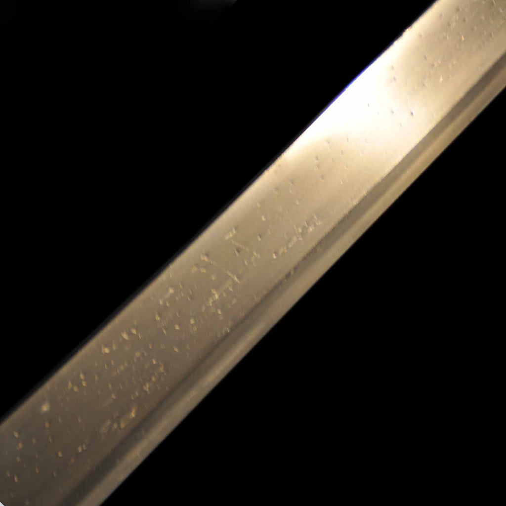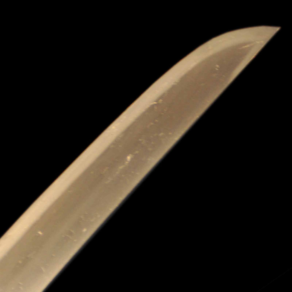 Unfortunately, this sword has numerous chisel marks on the blade. This is probably due to someone's unsuccessful attempt to engrave a name on the blade, which spoils the aesthetic appeal of the sword. Otherwise, the sword is in good condition and the jitetsu and blade pattern are very interesting to appreciate.