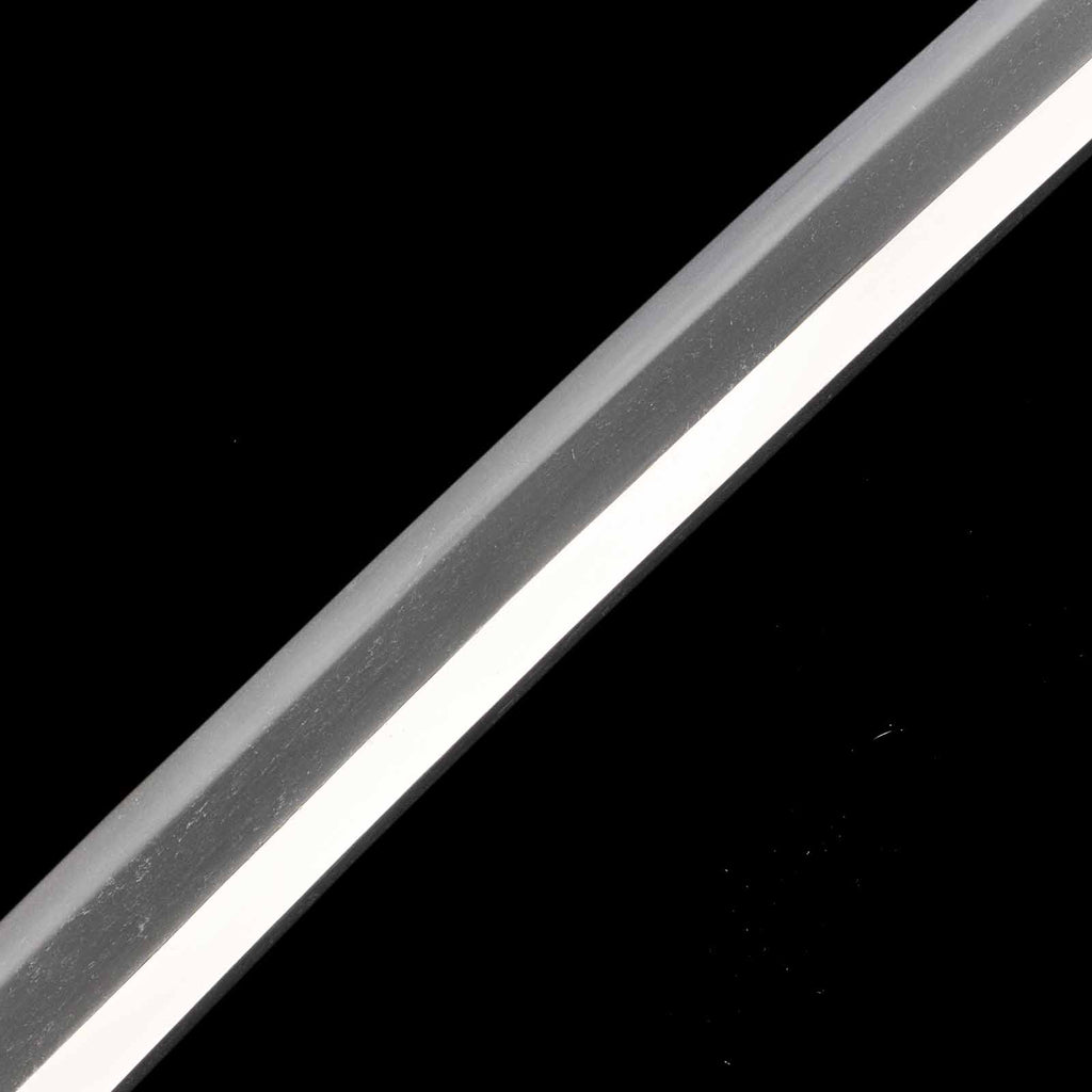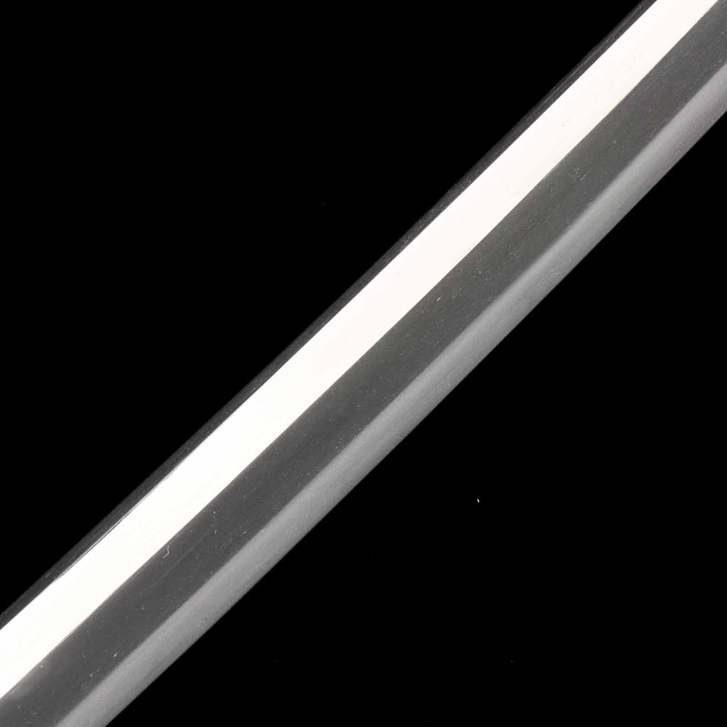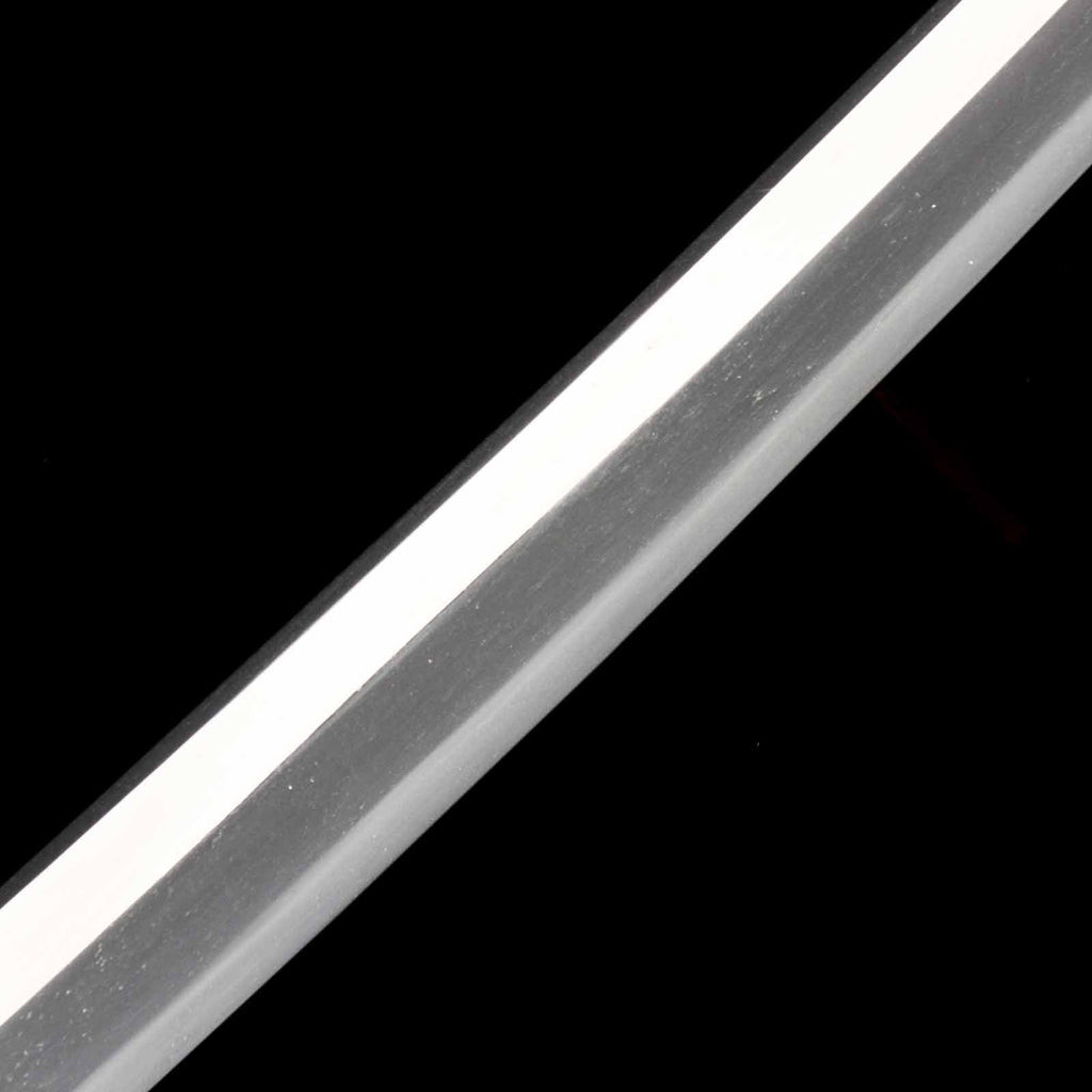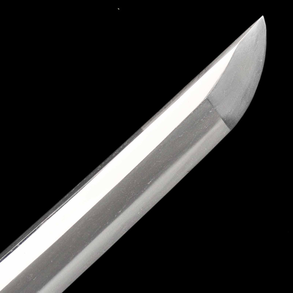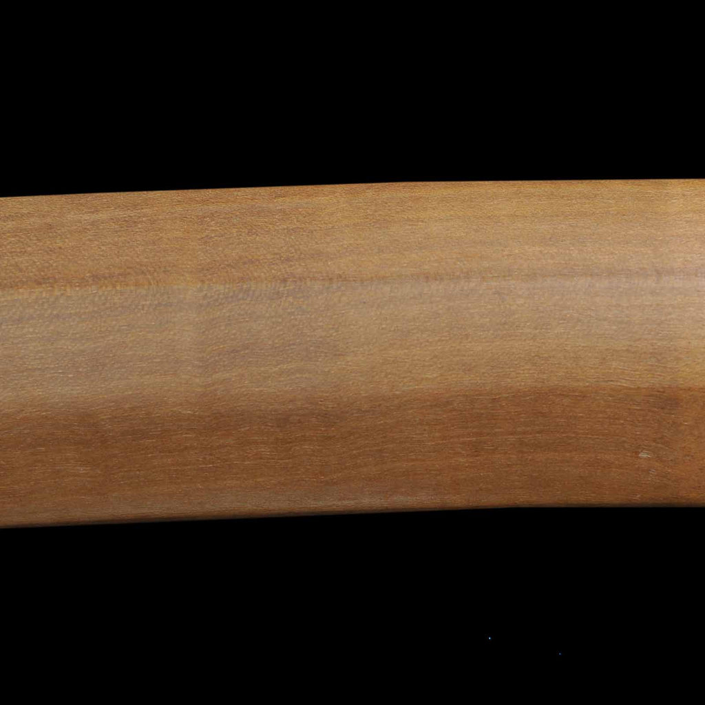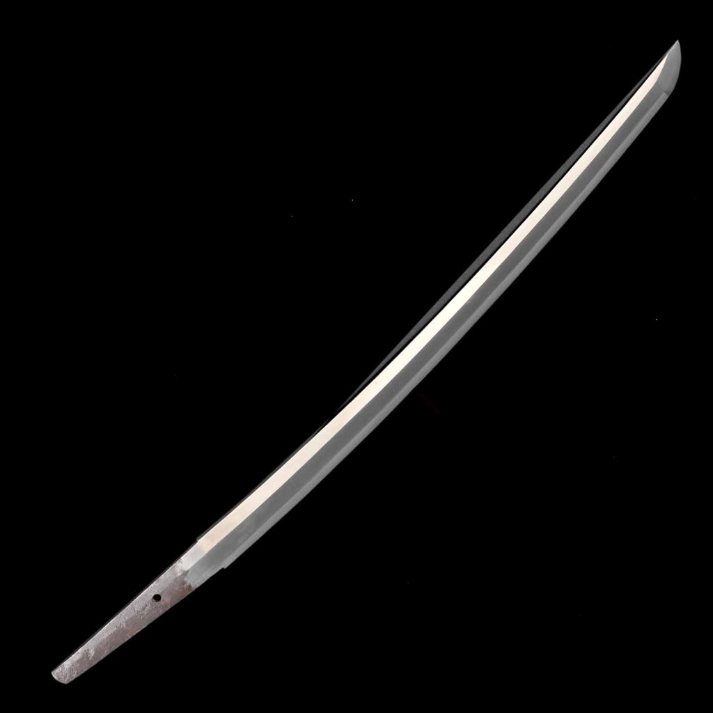 The blade is polished and almost flawless, but there is a chip on the blade about 25 cm from the hamachi, probably due to actual use. The jigane is a well-polished itame and the hamon is a slightly notare style suguha. Some hataraki, such as aranie and kinsen, can also be seen in ha. The name, Yamato no Kami Fujiwara Tadayuki is engraved on the nakago. Yamato no Kami Tadayuki was a swordsmith from the country of Bungo who was active during the Shinto period and is said to have been the son of the second Yamato no Kami Fujiwara Tadayuki. He made many works reminiscent of the master swordsman Inoue Shinkai, and was very active as the exclusive swordsmith of the Kumamoto clan in the Country of Higo.