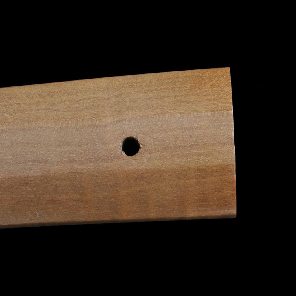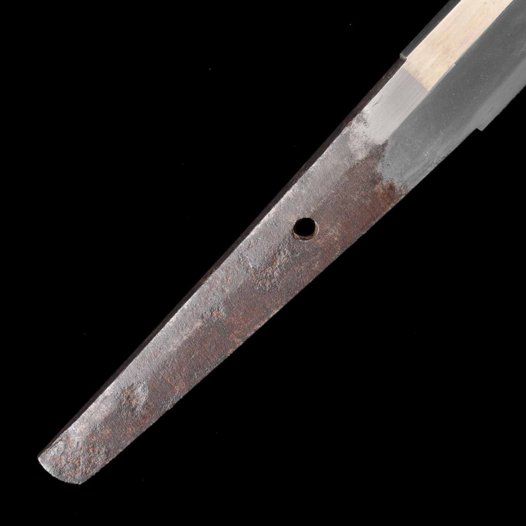 The koshirae is only shirasaya, but it is made of beautiful shirasaya material reminiscent of tiger stripes, known as Torame pattern, with a certificate of authenticity from NBTHK, plus we are offering this piece at a special low price because it is equipped with a beautiful torame shirasaya, but shows chips in the ha.